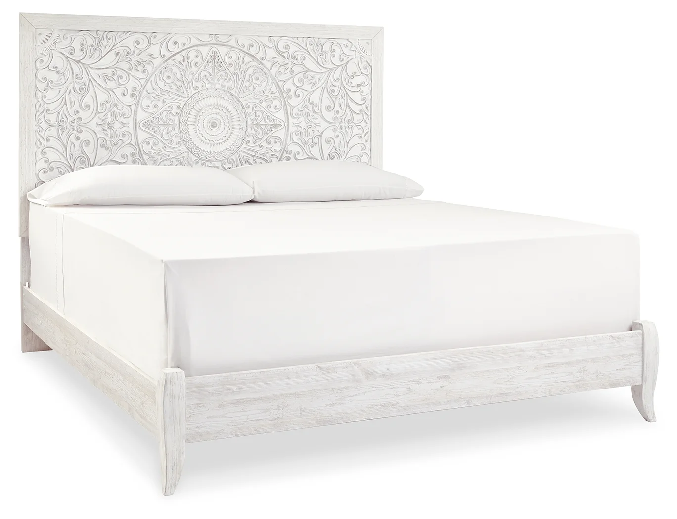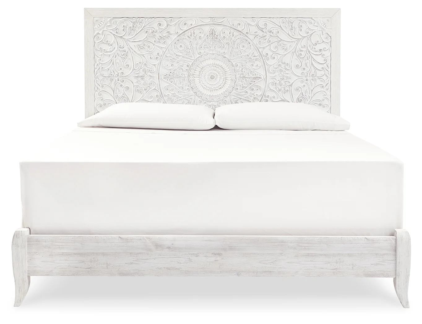 moreShowcase your trend-setting spirit with this bed. Inspired by bohemian tapestries, exquisite carved medallion pattern is a testament to boho-chic style. Whitewash finish sets a foundation for a room bursting with personality.