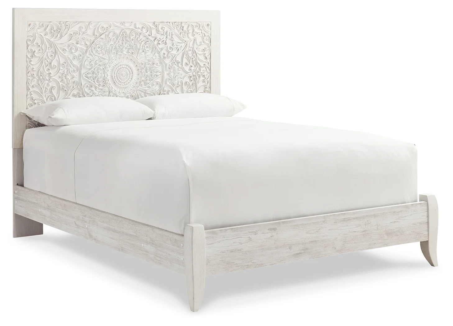 Live out your trendsetting free spirit with this queen headboard. Exquisite carved medallion pattern is a testament to boho-chic style. Charming whitewashed finish sets a foundation for a room bursting with personality. Adjustable height design offers added flexibility.