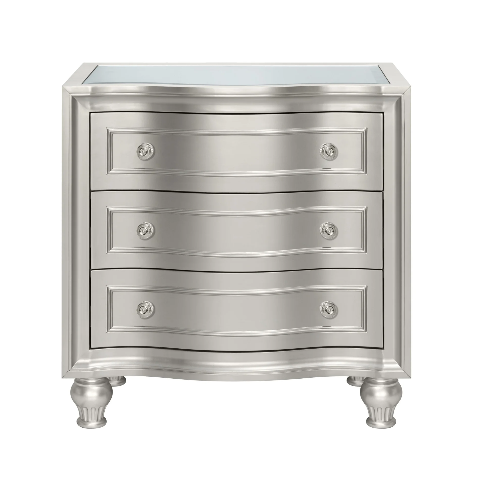 Traditional 3-Drawer Nightstand with Mirrored Top