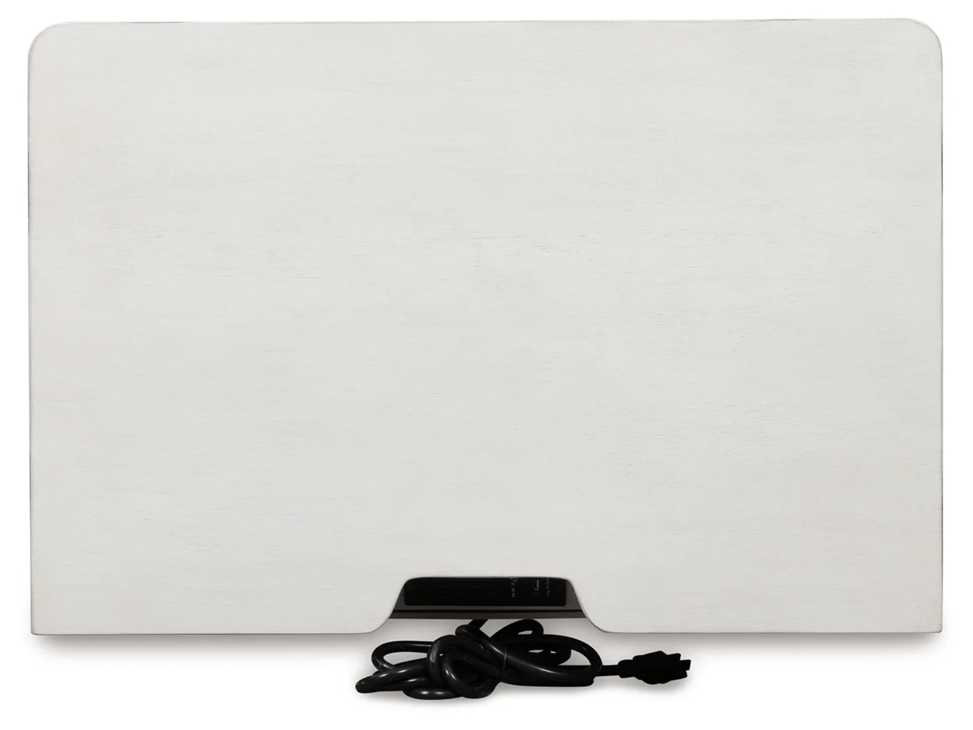 Made with hardwood solids, veneers and MDF substrates, Rubbed antiqued white finish, Metal hardware with pewter-tone finish, 3 smooth-gliding drawers with fully finished interiors, French/English dovetail construction and heavy-duty ball-bearing side glides, Top drawer felt lined, 110V power supply with USB-A and USB-C charging ports, Power cord included; UL listed