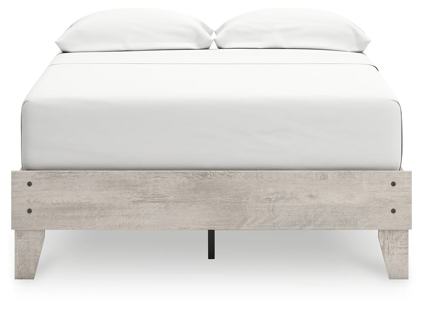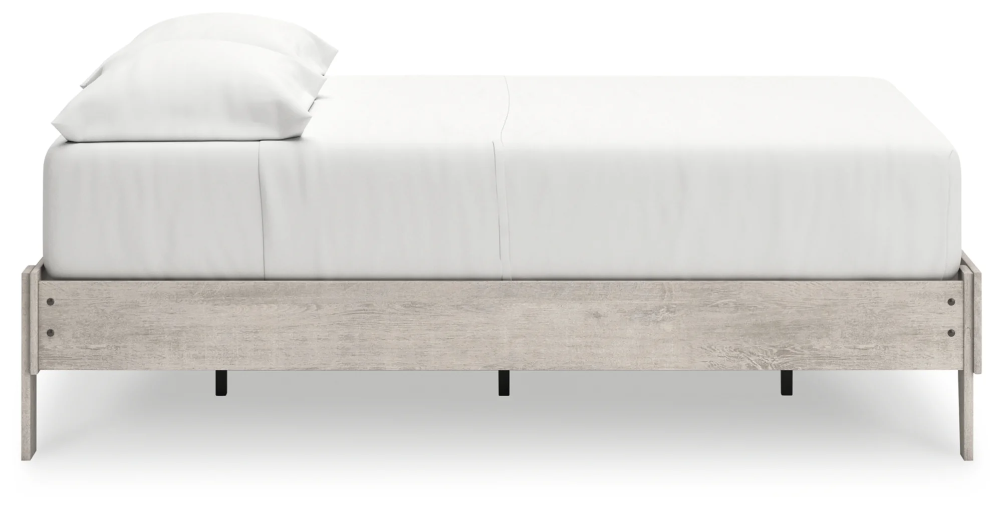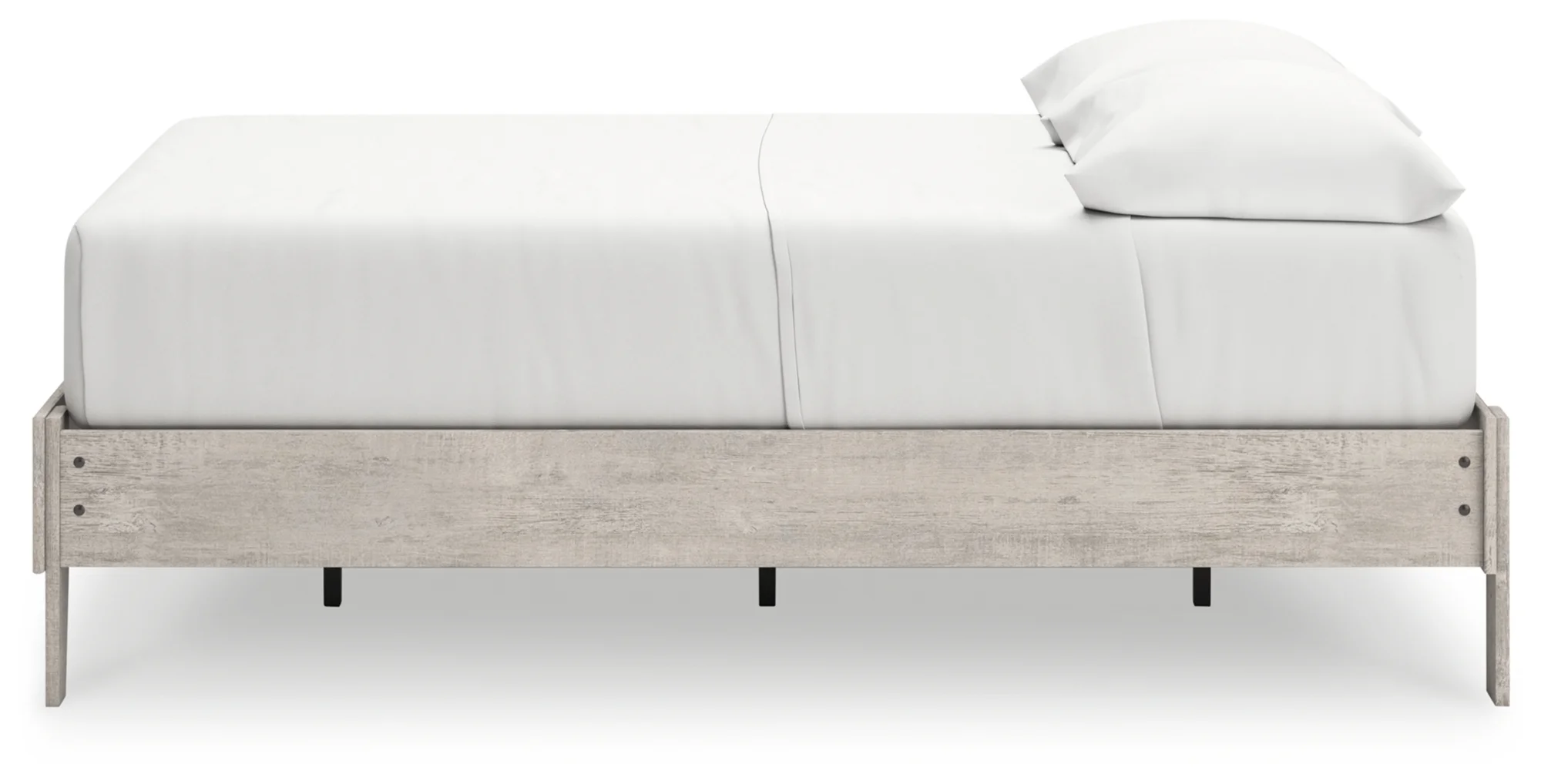 Full platform bed (does not include headboard), Made with engineered wood (MDF/particleboard/plywood) and decorative laminate for the right balance of affordability and durability, Light gray finish over replicated oak grain with authentic touch, Decorative laminate replicates natural or man-made material surfaces with consistent color, pattern and texture, Bed does not require additional foundation/box spring; accommodates most zero clearance adjustable bases, Mattress available, sold separately, Assembly required