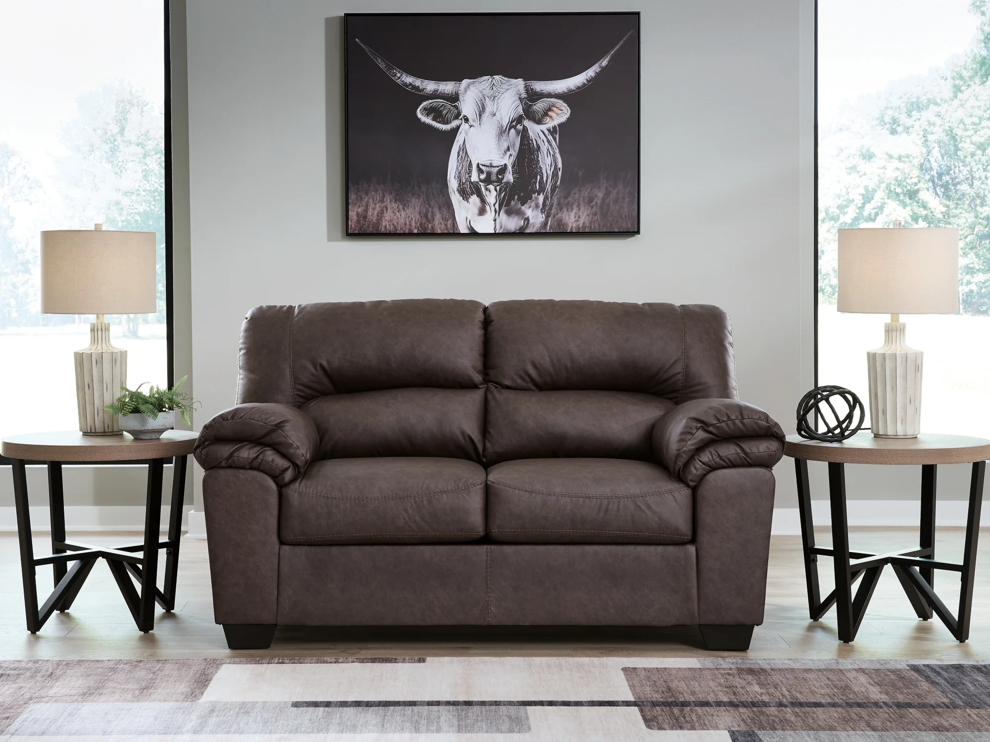 moreModern comfort never looked so good. Sporting supremely soft yet durable cushions accented with high-fashion jumbo stitching, this stunning loveseat is the ultimate choice in comfortably cool, contemporary style. Its umber-hued faux leather indulges with an upscale feel and wows like the real thing.