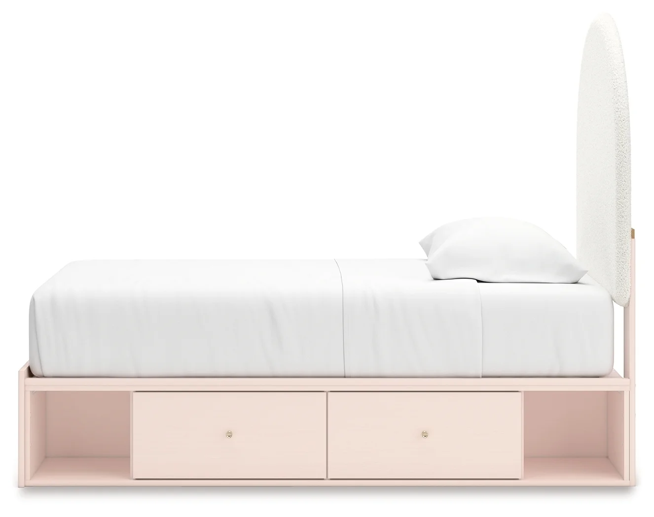 morePretty in pink. This twin upholstered panel bed with storage keeps the spirit of your home’s modern aesthetic while suiting all your young one’s needs. Its cozy-cute upholstery and subtle blush finish bring a playful, charming vibe to bedtime. Made for her and styled for you, it’s a lovely addition to a beautifully chic child’s bedroom.