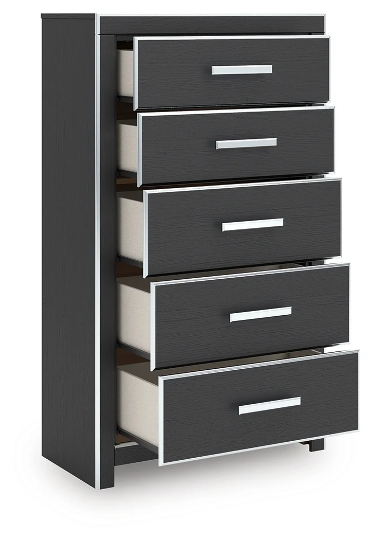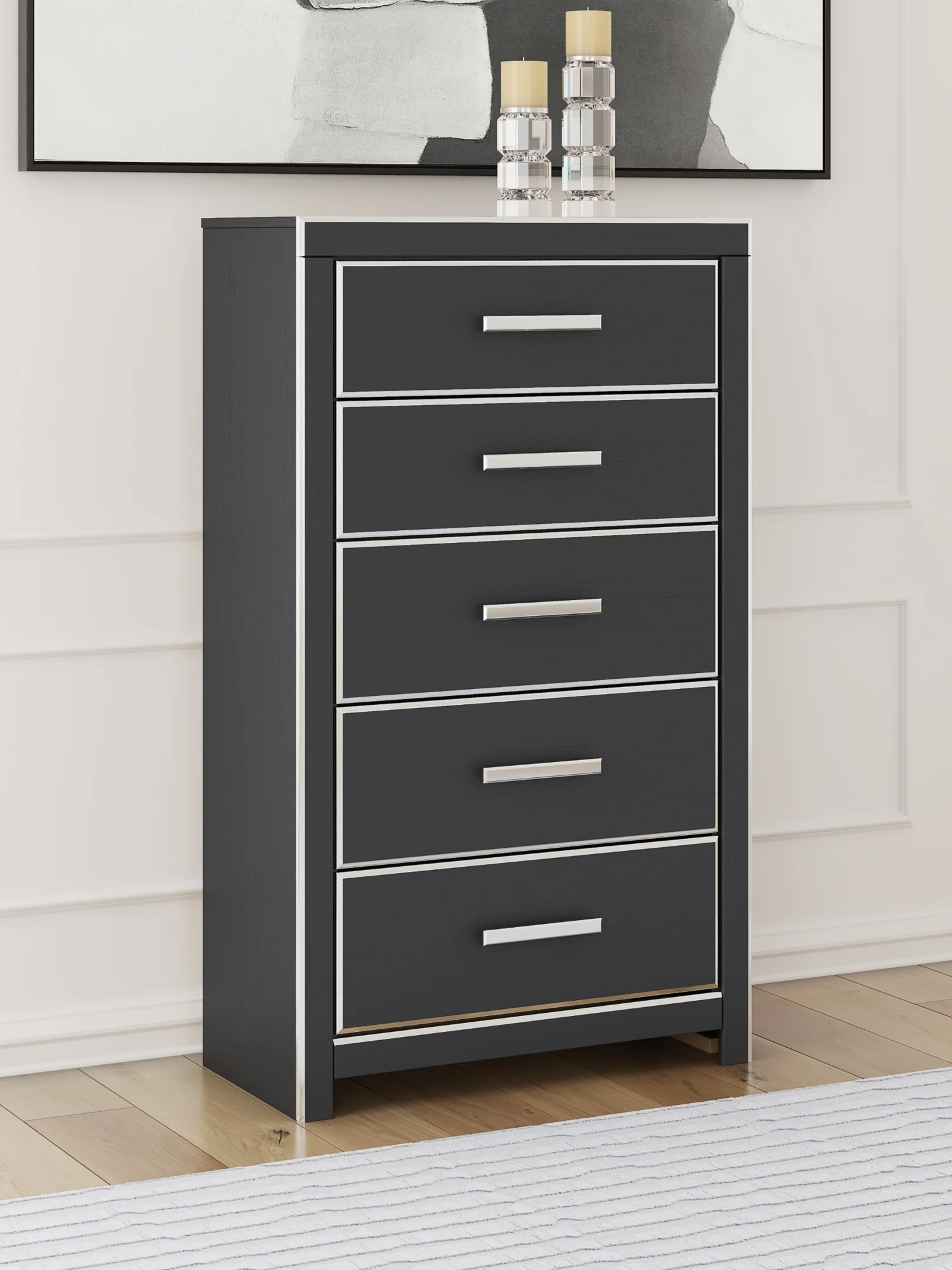 King Storage Bed, Dresser, Mirror, Chest And Nightstand