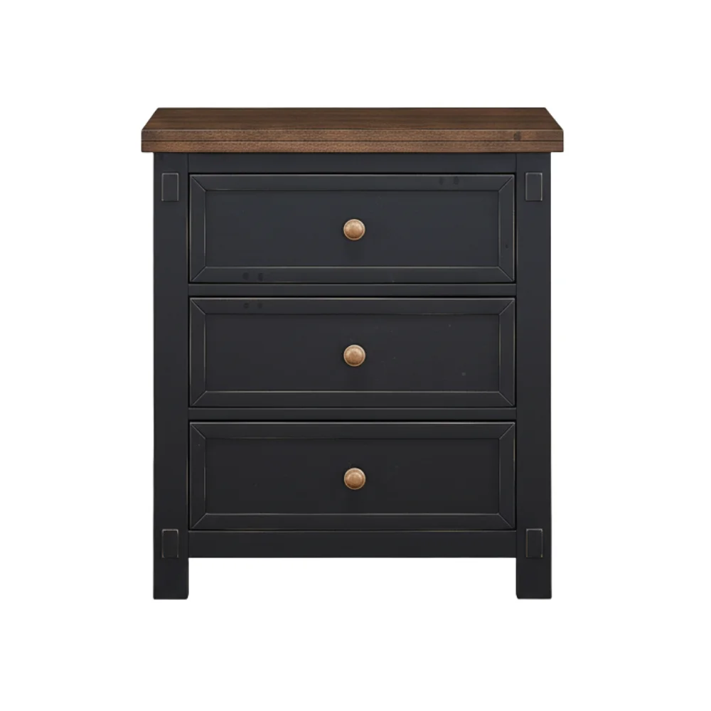 From the warmth of the chicory to the richness of the slate black, this two-tone nightstand will bring a rustic charm to your space. Conveniently, this piece comes with a usb port, perfect for charging your phone or other devices at night. Masterfully crafted from solid wood, this gorgeous piece is built to last.