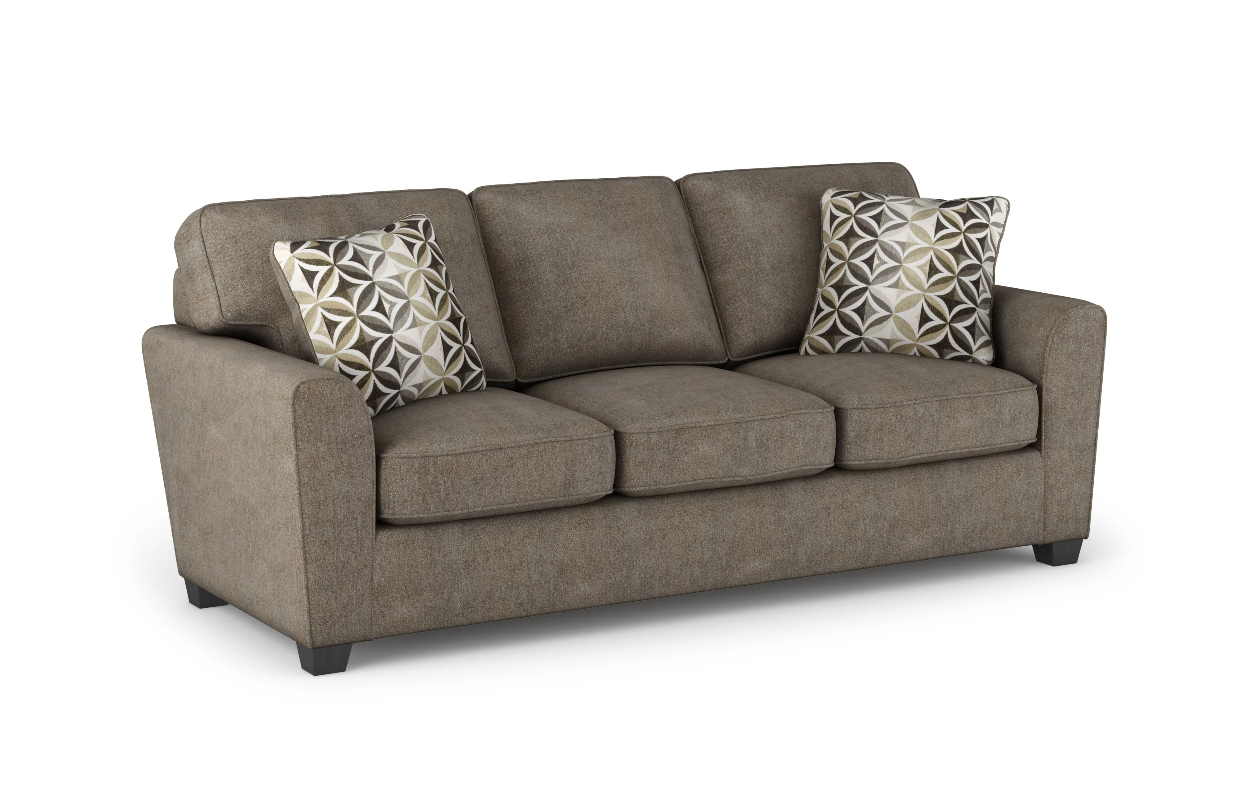 This casual sofa has an understated, comfortable design, perfect for your modern no-hassle lifestyle. The minimalist design and clean lines adorning this sofa, like rounded flair arms, square back cushions, and tapered block legs, create a laid-back casual appeal. This three-seater sofa is sure to become a centerpiece in your home, gathering your family and friends together for movie night, the big game, or coffee and conversation. The plush seat and back of this sofa are especially engineered to provide you with a resilient seating comfort, our multi-layer cushions guaranteeing your soft and supportive seat will retain its shape for years to come.