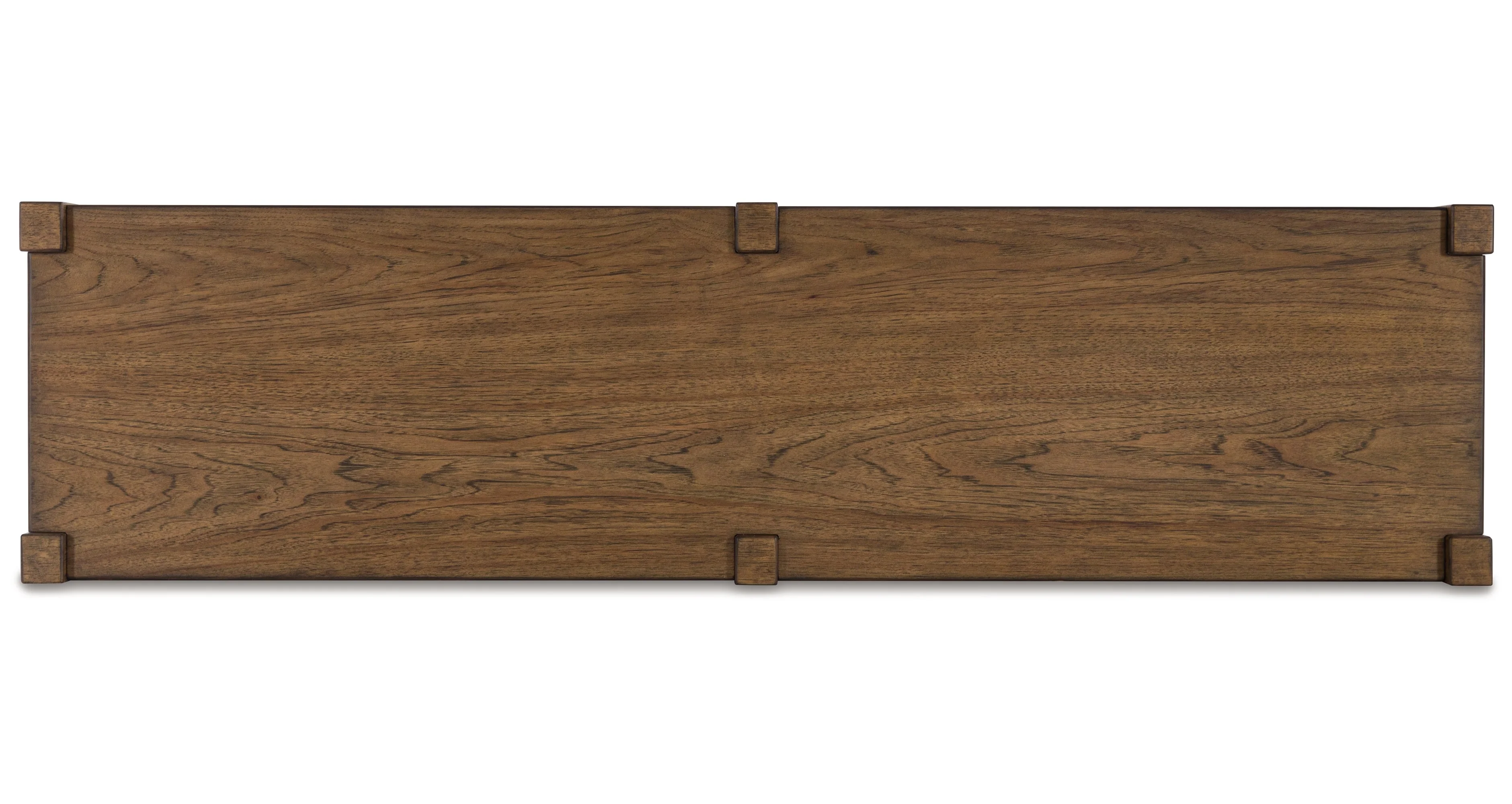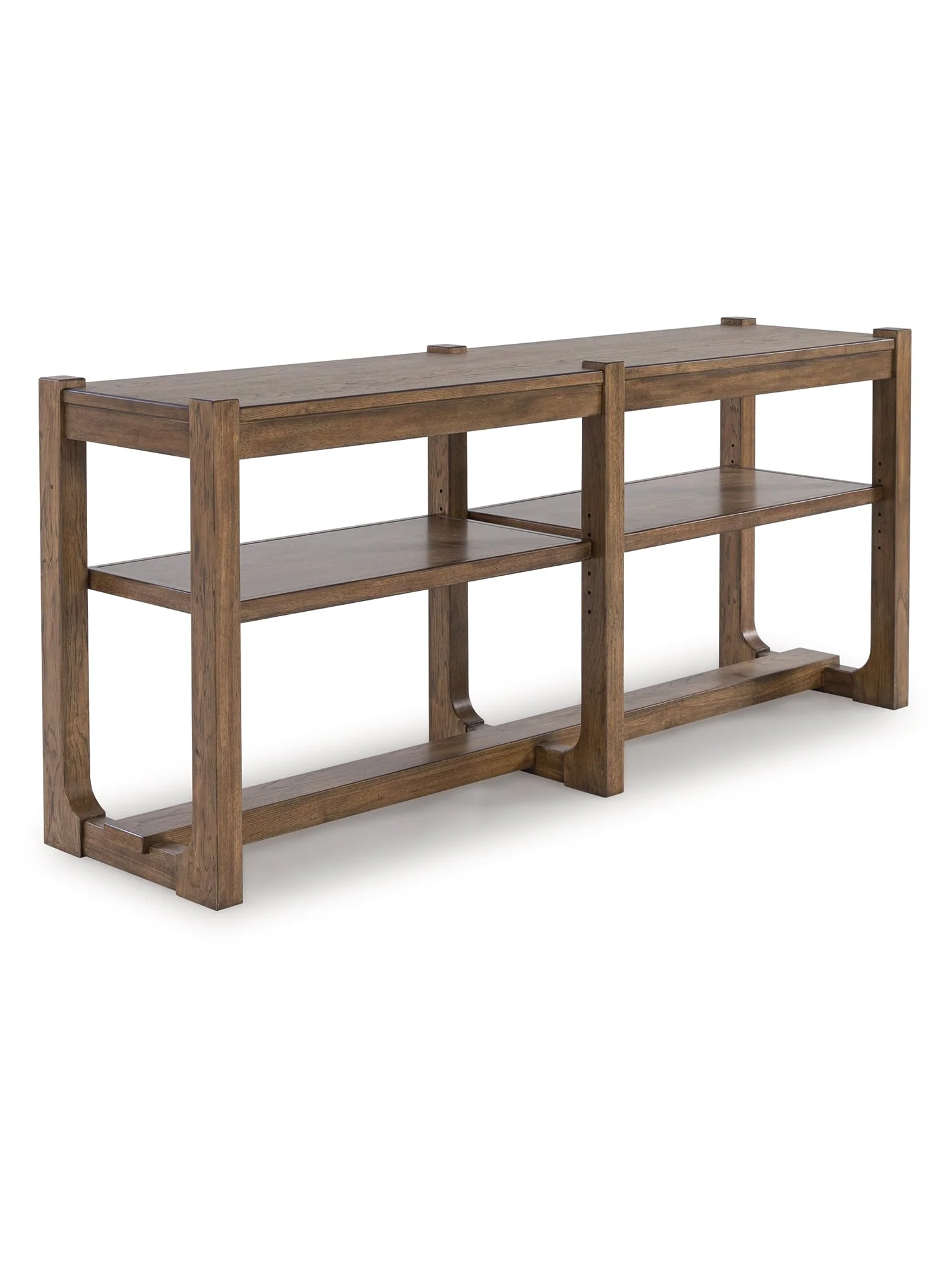 This sofa table sits comfortably at the intersection of modern lodge and farmhouse aesthetics. Your warm and welcoming disposition is reflected in the charming architectural elements and light brown glazed finish. Even with its poise, this table remains practical. With its multifunctional design, it doubles as a stunning TV stand or as a bookcase in the office.