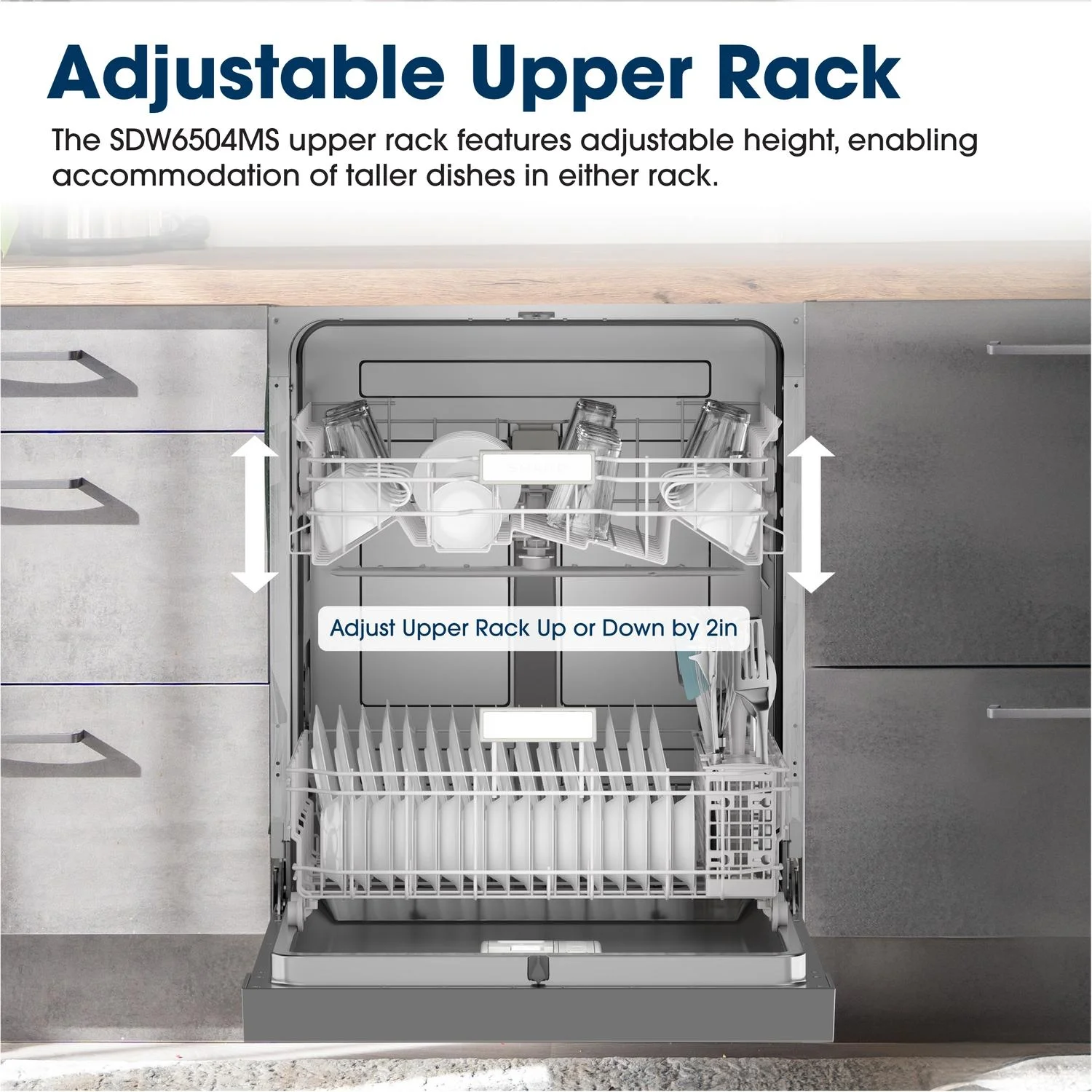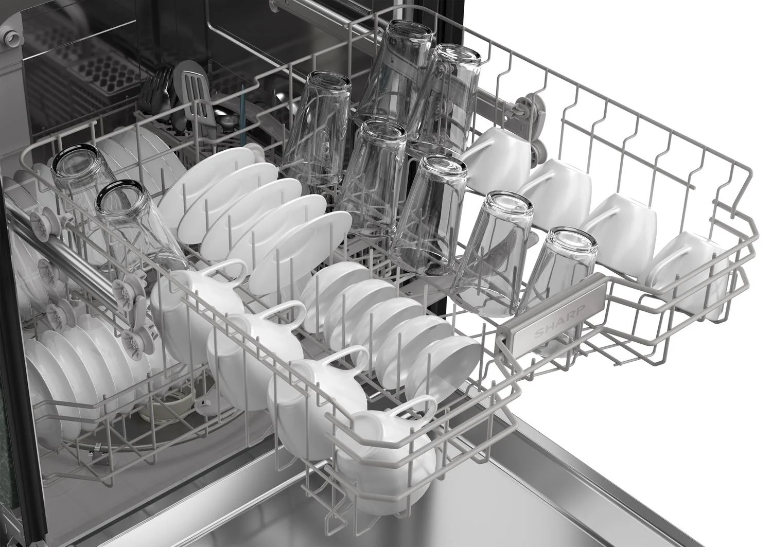Classic and elegant, the SDW6504MS offers thoughtful touches inside and out. The adjustable upper rack holds larger dishes and taller glasses. The fold-down tines in the lower rack make it easier to load extra large or hard-to-fit items such as serving bowls and roasters. The SDW6504MS Stainless Steel Hybrid Dishwasher from Sharp is Simply Better Living!