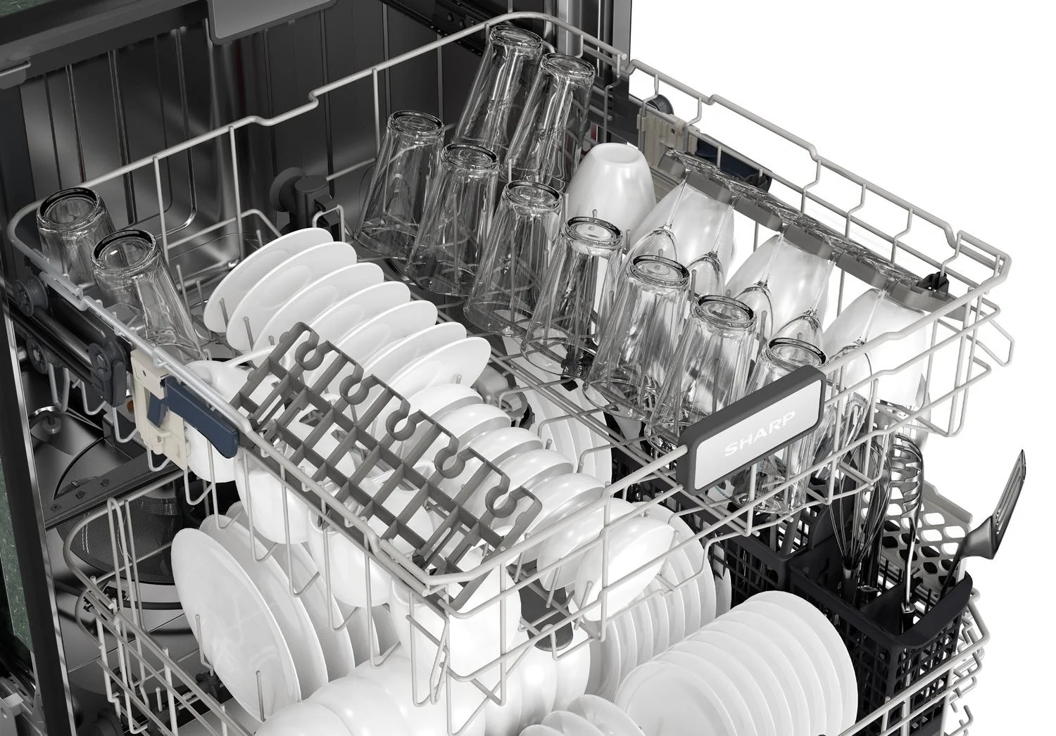 The Sharp® SDW6736MS balances thoughtful features and options to improve your dishwashing experience. With six washing cycles, seven options, outstanding washing power, and an adjustable third rack, the SDW6736MS is ready to clean up after big celebrations and cozy staycations!
