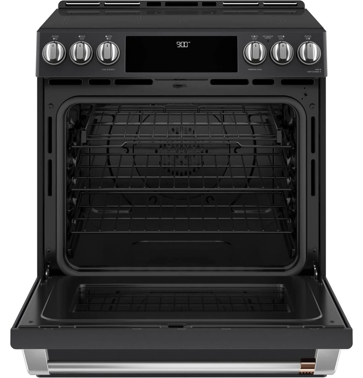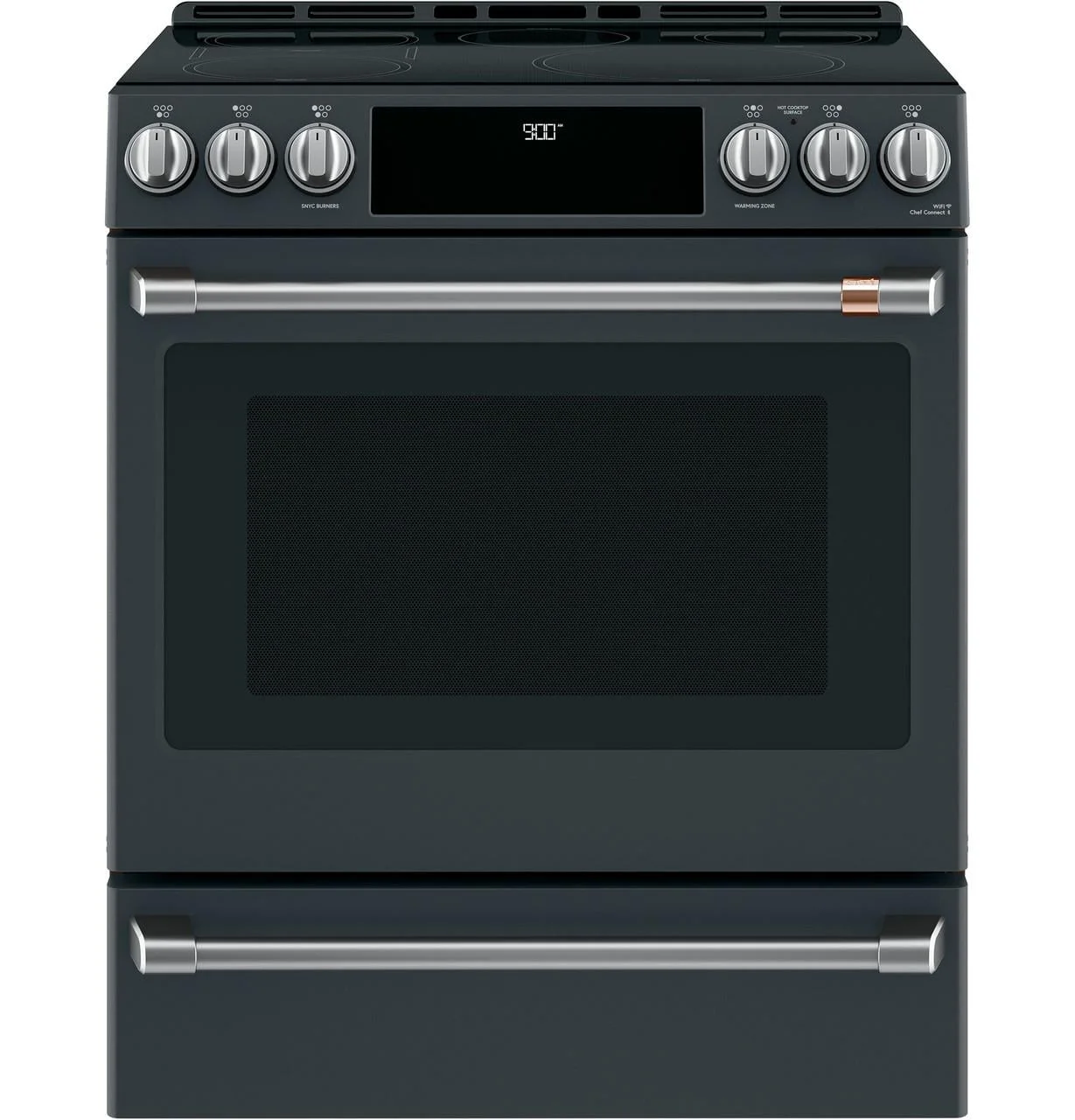 The Electric Ranges Café™ 30" Smart Slide-In, Front-Control, Induction And Convection Range With Warming Drawer, made by Café,
