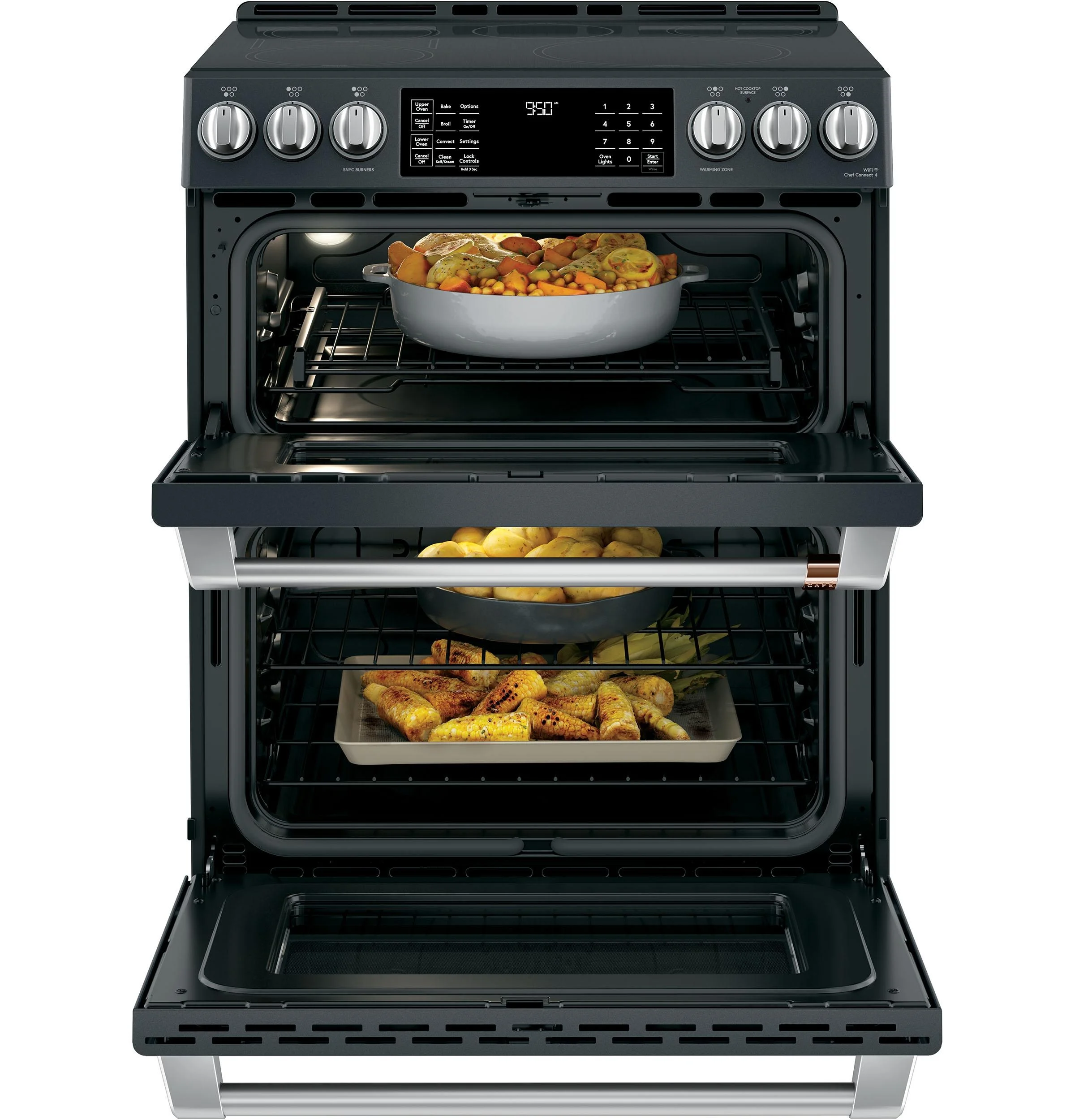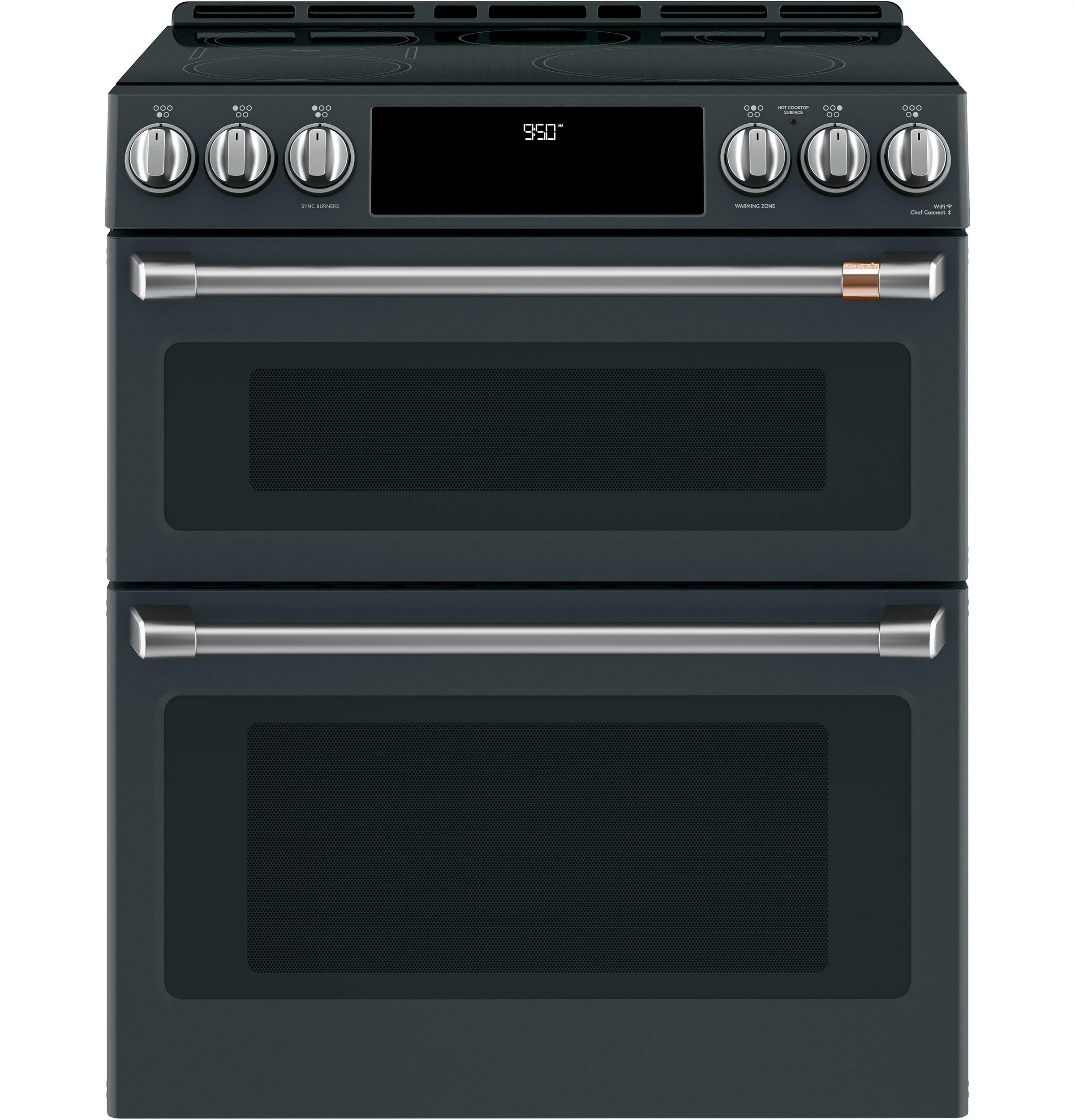 The Electric Ranges Caf(Eback)™ 30" Smart Slide-In, Front-Control, Induction And Convection Double-Oven Range, made by Café,
