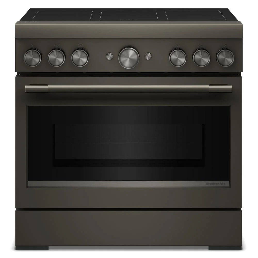 The Electric Ranges 36-Inch 6-Element Induction Freestanding Commercial-Style Range With Air Fry, made by KitchenAid,