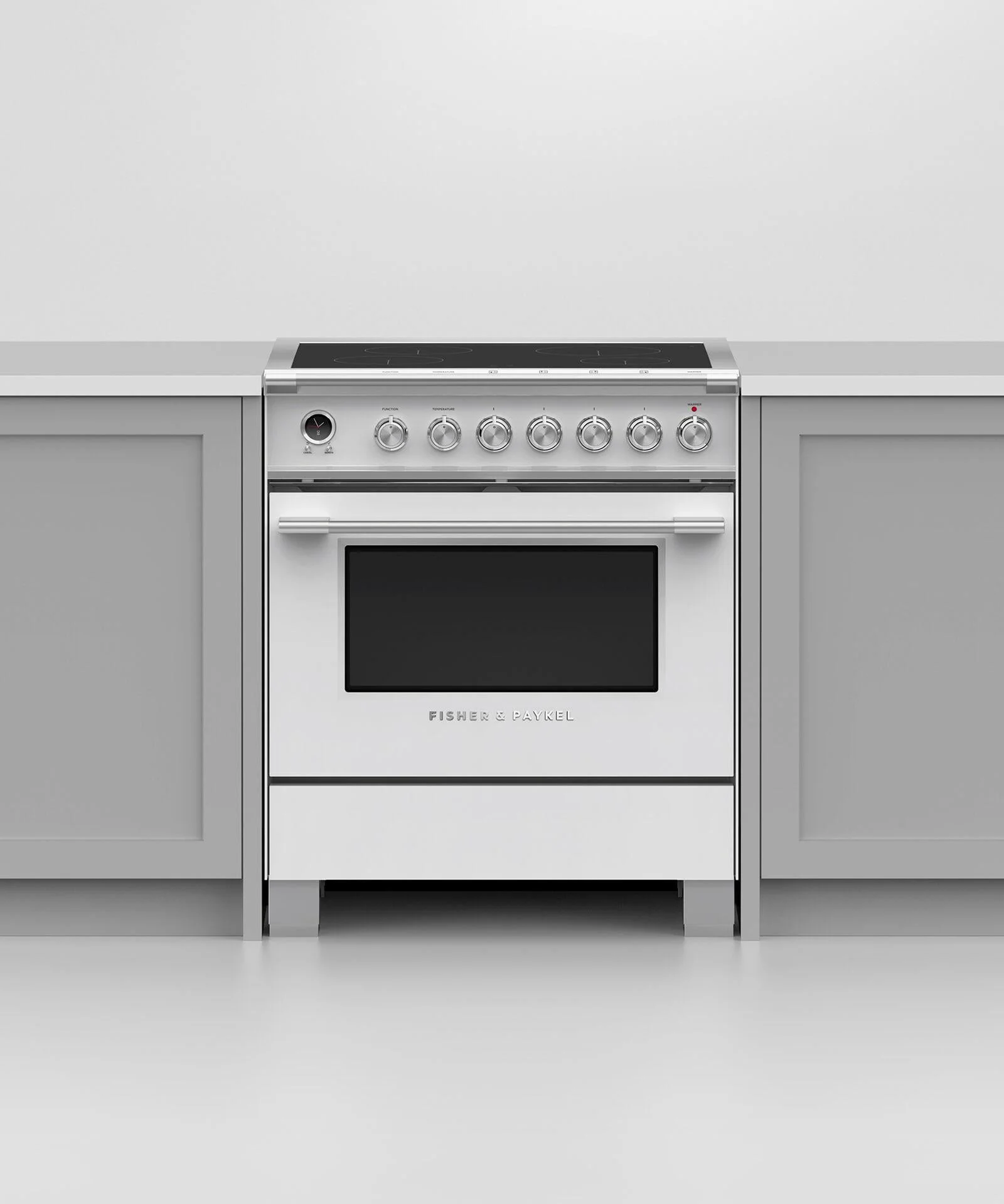 The Electric Ranges 30" Series 9 Classic 4 Zone Induction Self-Cleaning Range, made by Fisher and Paykel,