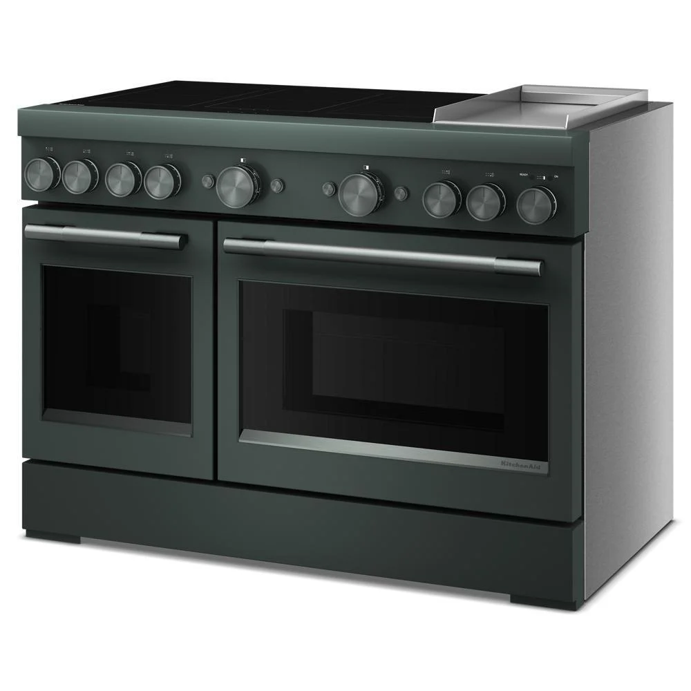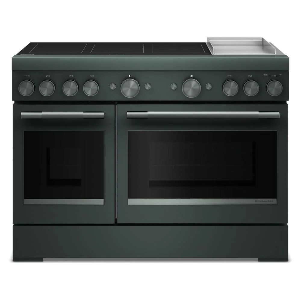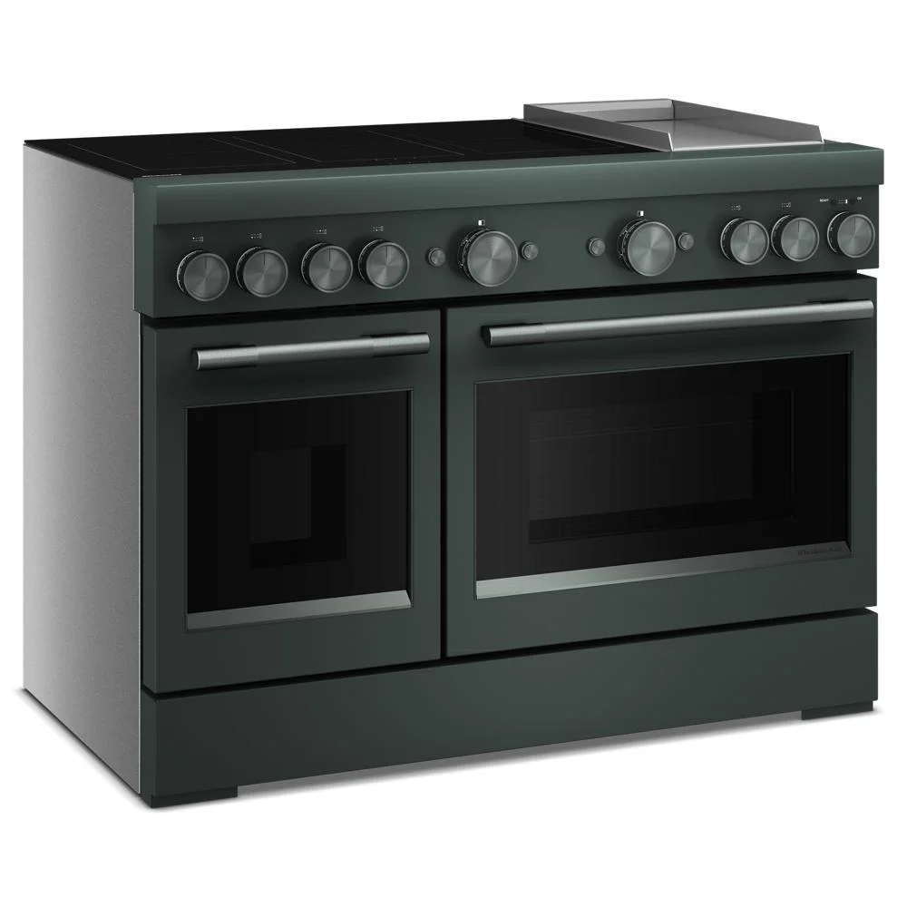 The Electric Ranges 48-Inch 6-Element Induction Freestanding Commercial-Style Range With Griddle, made by KitchenAid,