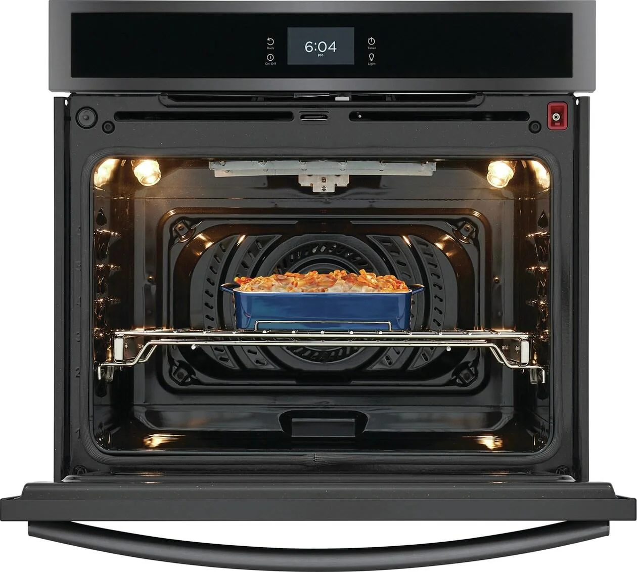 The Frigidaire Gallery 30" Single Wall Oven with Total Convection, features our most powerful and advanced convection system, which enables cooking modes like No Preheat, Air Fry, Slow Cook, Steam Bake, Steam Roast, Air Sous Vide, Convection Roast, Convection Bake, Bread Proof and more! Also includes a convenient temperature probe, a premium touch screen digital control panel and our fingerprint resistant, Smudge-Proof® Stainless Steel finish.