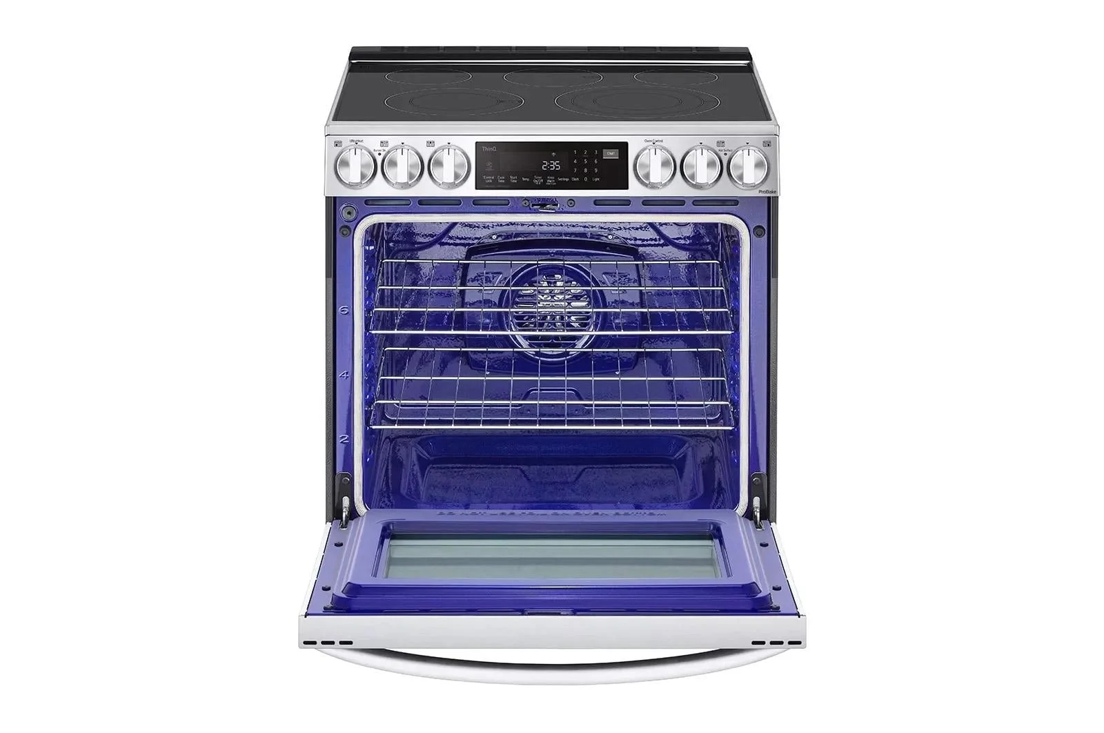 Enjoy a 2-year limited warranty on select appliances purchased through December 31, 2025 via the ThinQ® app. Terms apply., Get the ThinQ® app to access smart features and ThinQ Care™ alerts, Dual and triple elements let you adjust the size to accommodate different sizes of cookware, Probake Convection®, our best convection technology for even cooking on multiple racks simultaneously, Air fry crispy meals with little to no oil, Knock twice on the InstaView® window to see inside, Speed clean your oven with our 10-Minute EasyClean® cycle or use self-clean for a deep clean