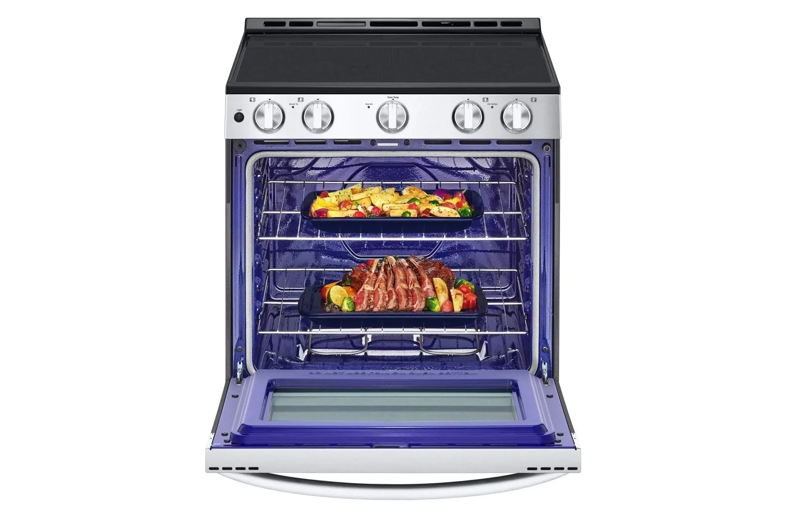 The Electric Ranges 6.3 Cu. Ft. Electric Slide-In Range, made by LG,