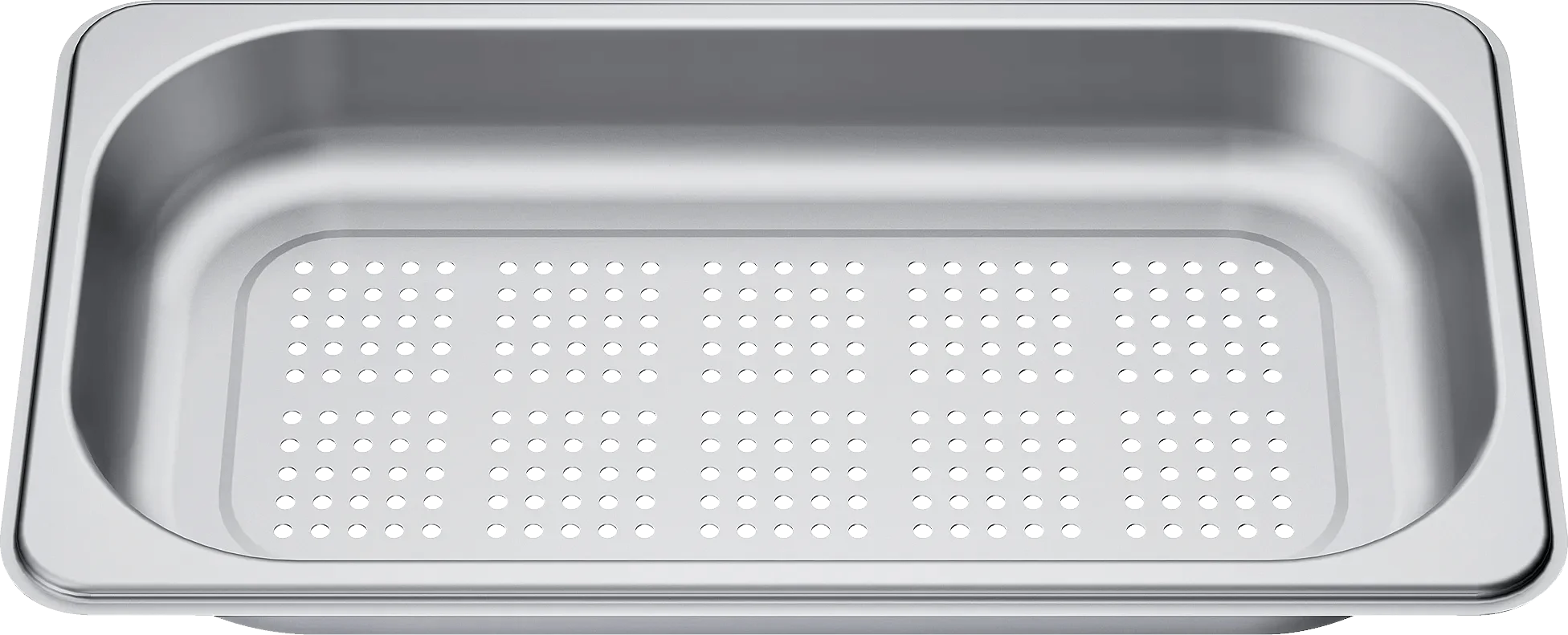 - 3 x oven racks /upper, 1 x rotary spit, 1 x broiler pan /upper, 1 x telescoping extension rails 3-fold, 1 x temperature probe /upper, 1 x temperature probe /lower, 1 x universal pan, 1 x steam container, punched, size S, 1 x steam container, punched, size XL, 1 x steam container, unpunched, size S, 3 x telescopic rack, 1 x broiler pan