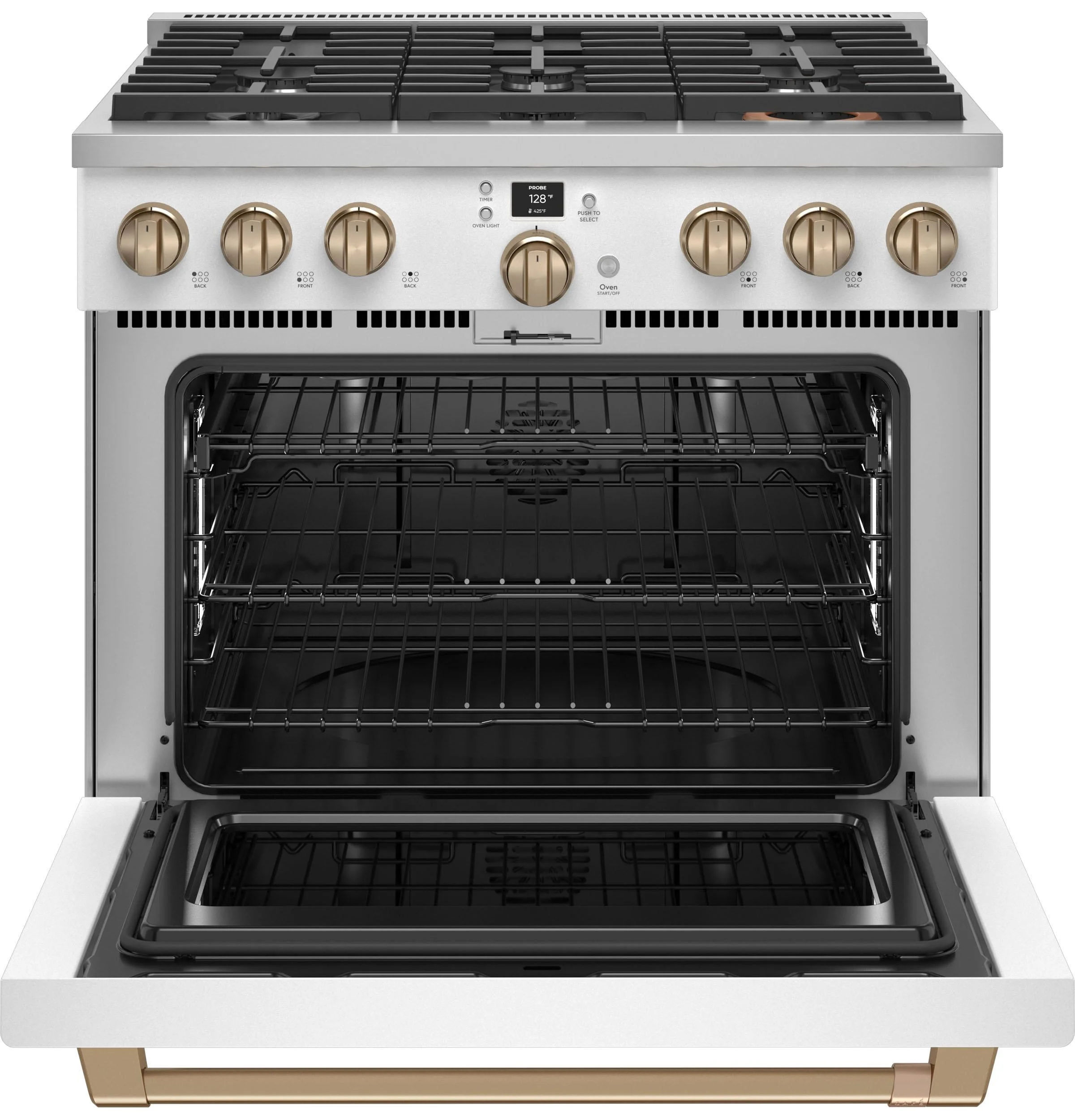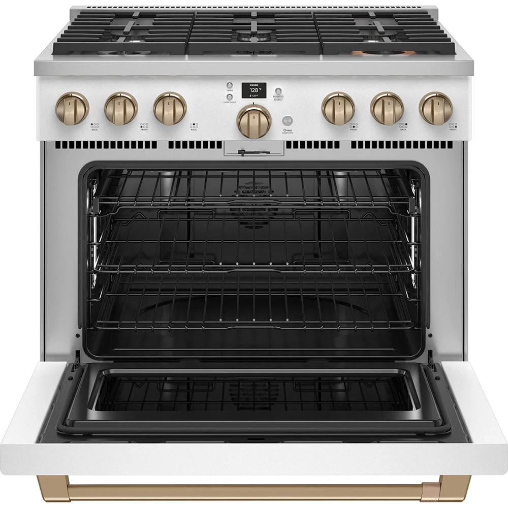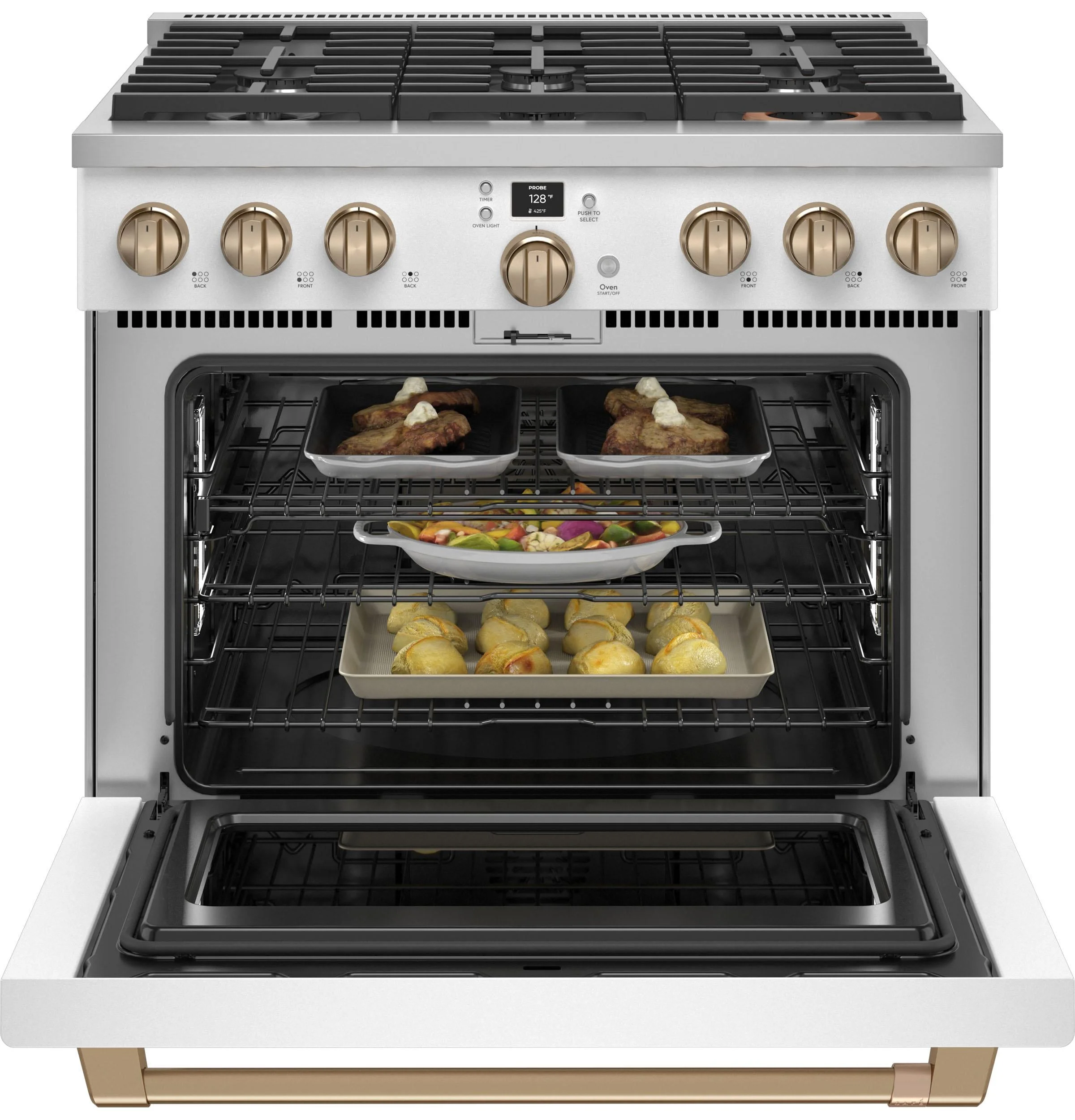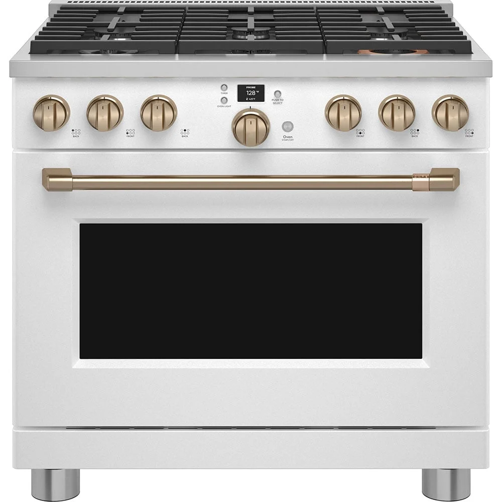 The Gas Ranges Café 36" Smart Dual-Fuel Commercial-Style Range Matte White, made by Café,