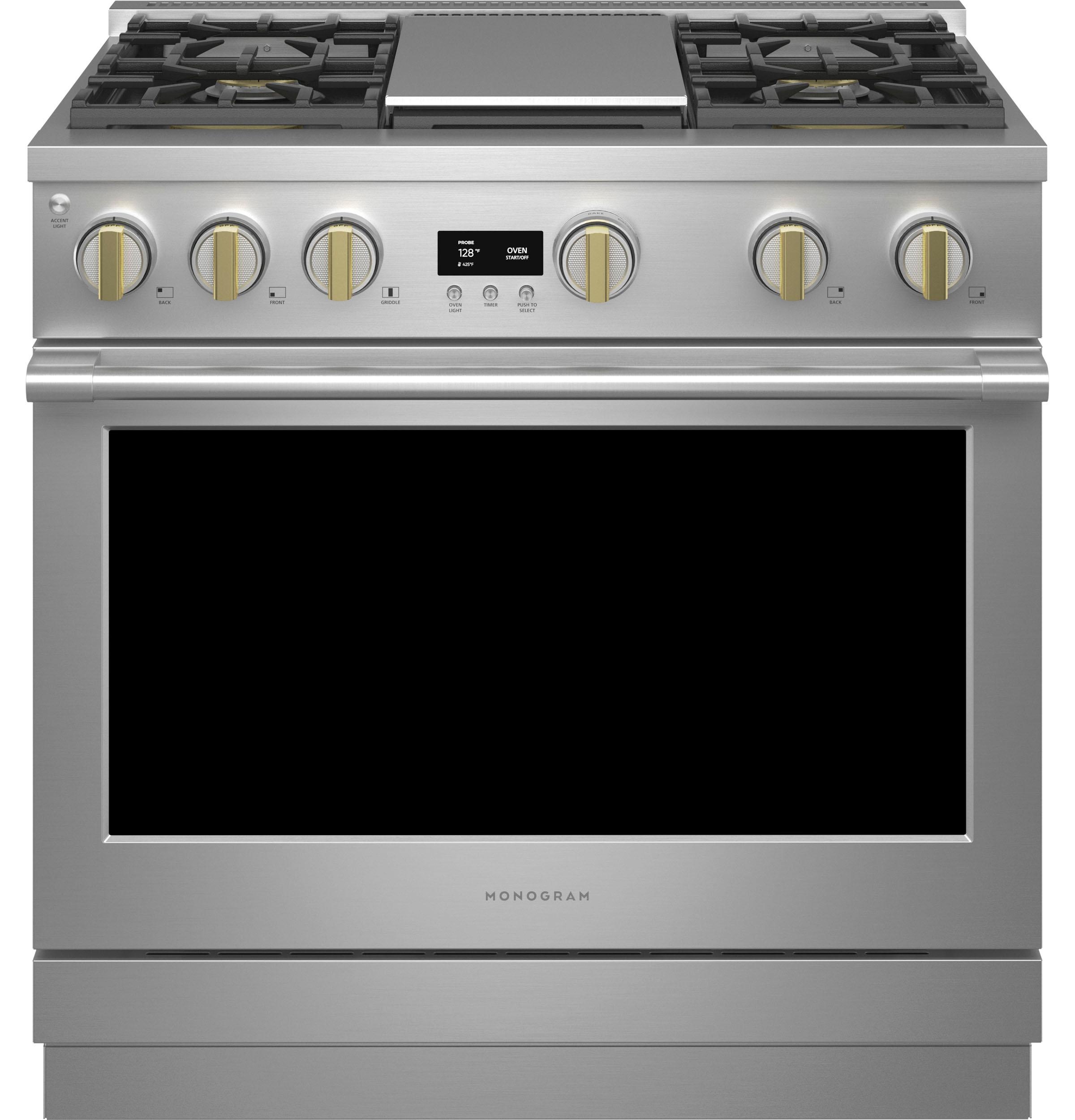 The Gas Ranges Monogram 36" All Gas Professional Range With 4 Burners And Griddle, made by Monogram,