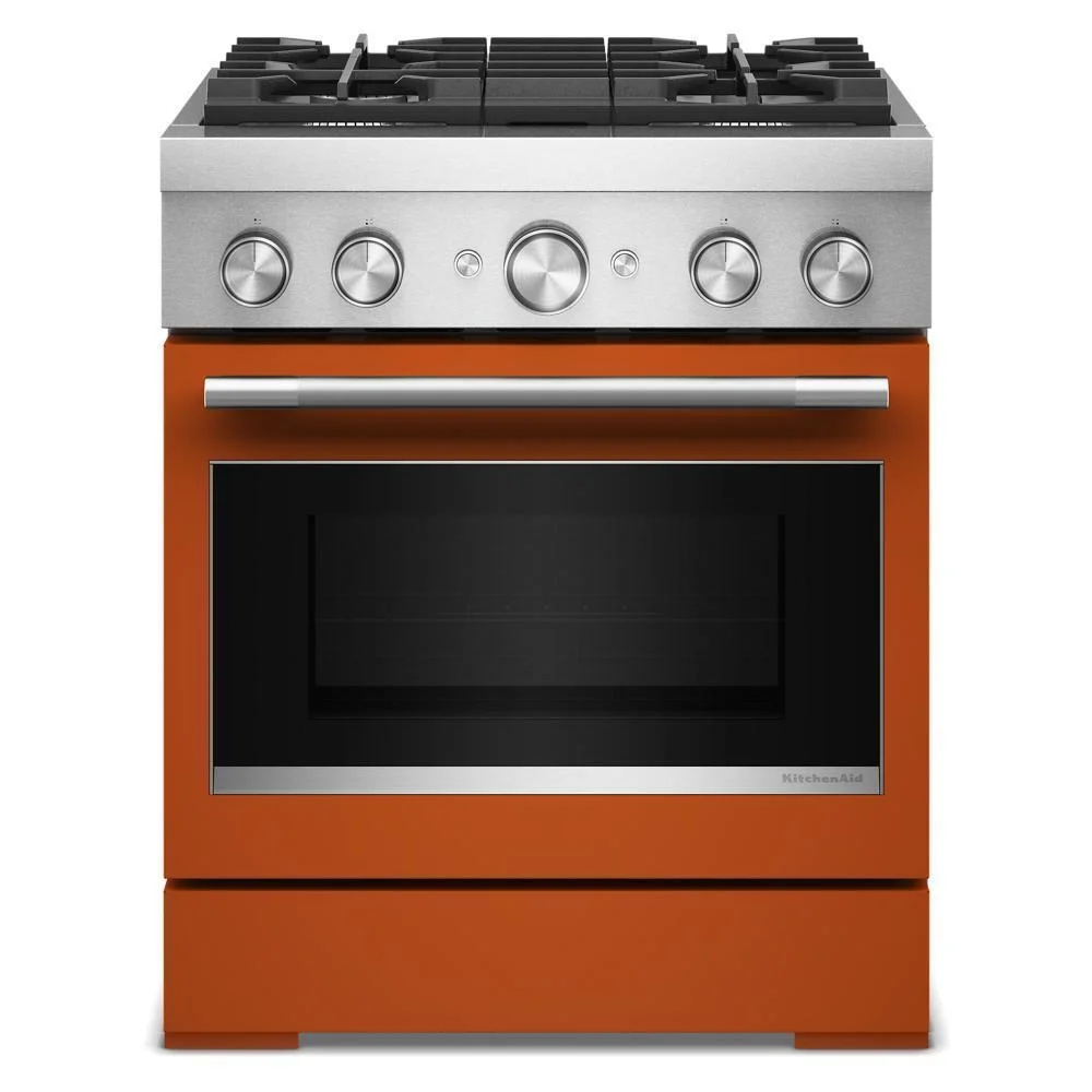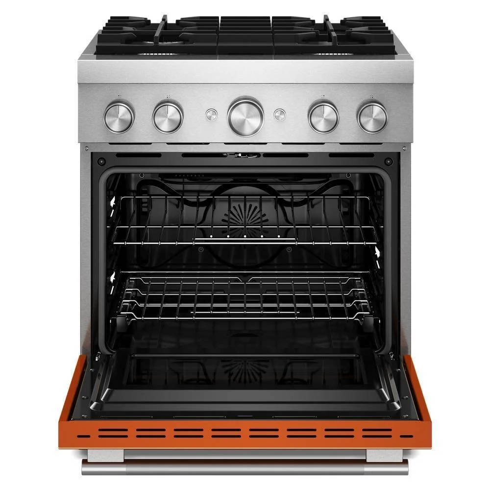 The Gas Ranges 30-Inch 4 Burner Commercial-Style Dual Fuel Range With No Preheat Air Fry Mode, made by KitchenAid, is brought to you by Sherman's. Sherman's is a local furniture store, serving the Peoria, Normal, and Peru, IL area. Product availability may vary. Contact us for the most current availability on this product.