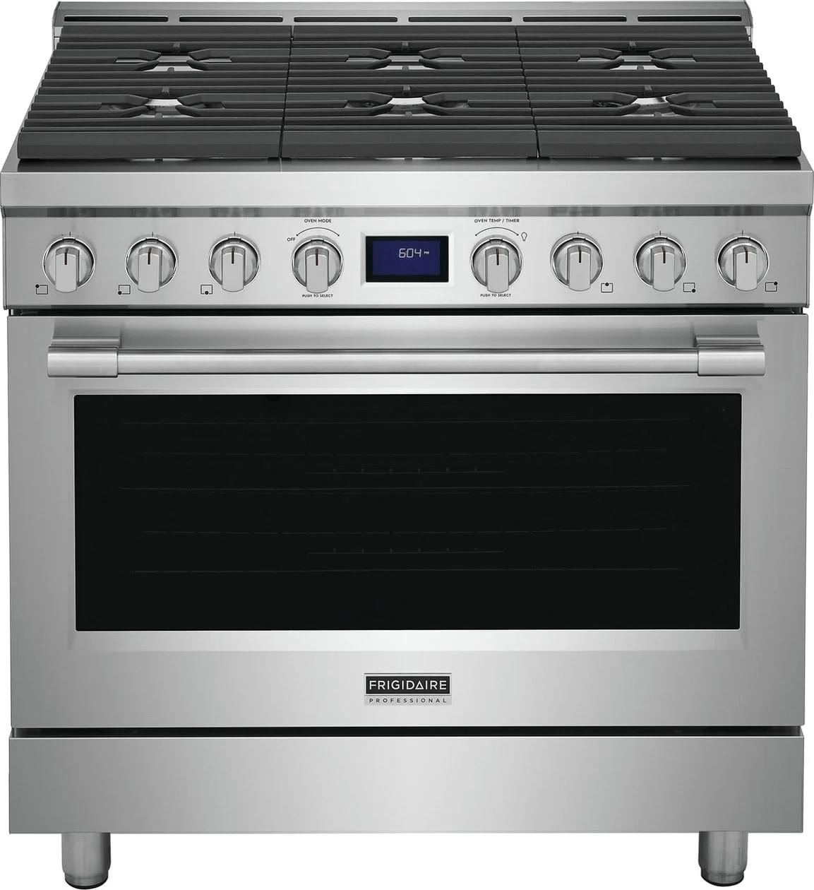 The Gas Ranges 36" Front Control Freestanding Gas Range, made by Frigidaire,
