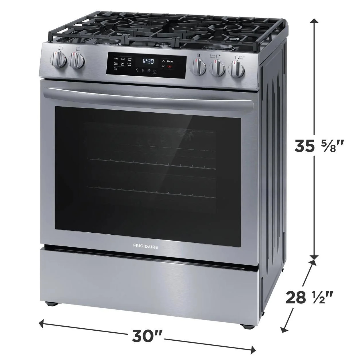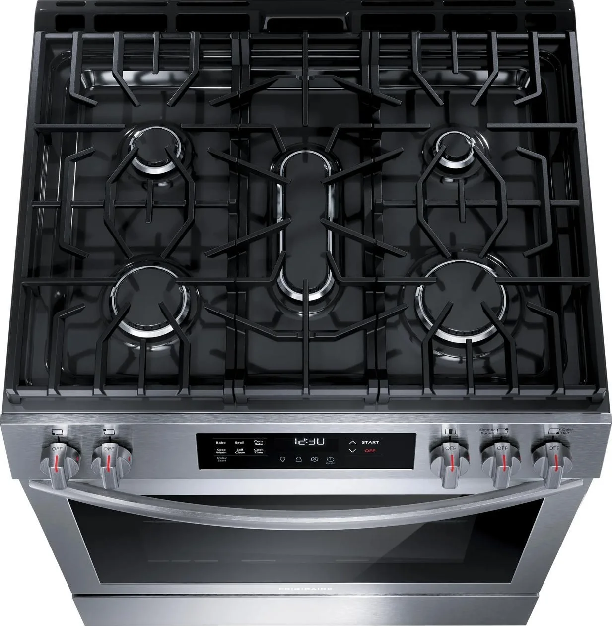 Dishwasher Safe Burner Caps, Five Burner Cooktop, Extra Wide Store-More™ Storage Drawer, Quick Boil, Continuous Edge-to-Edge Grates, Built-in Design, Frigidaire® Fit Promise, Extra Wide Store-More™ Storage Drawer, 5.1 Cu. Ft. Oven Capacity, Dishwasher Safe Burner Caps