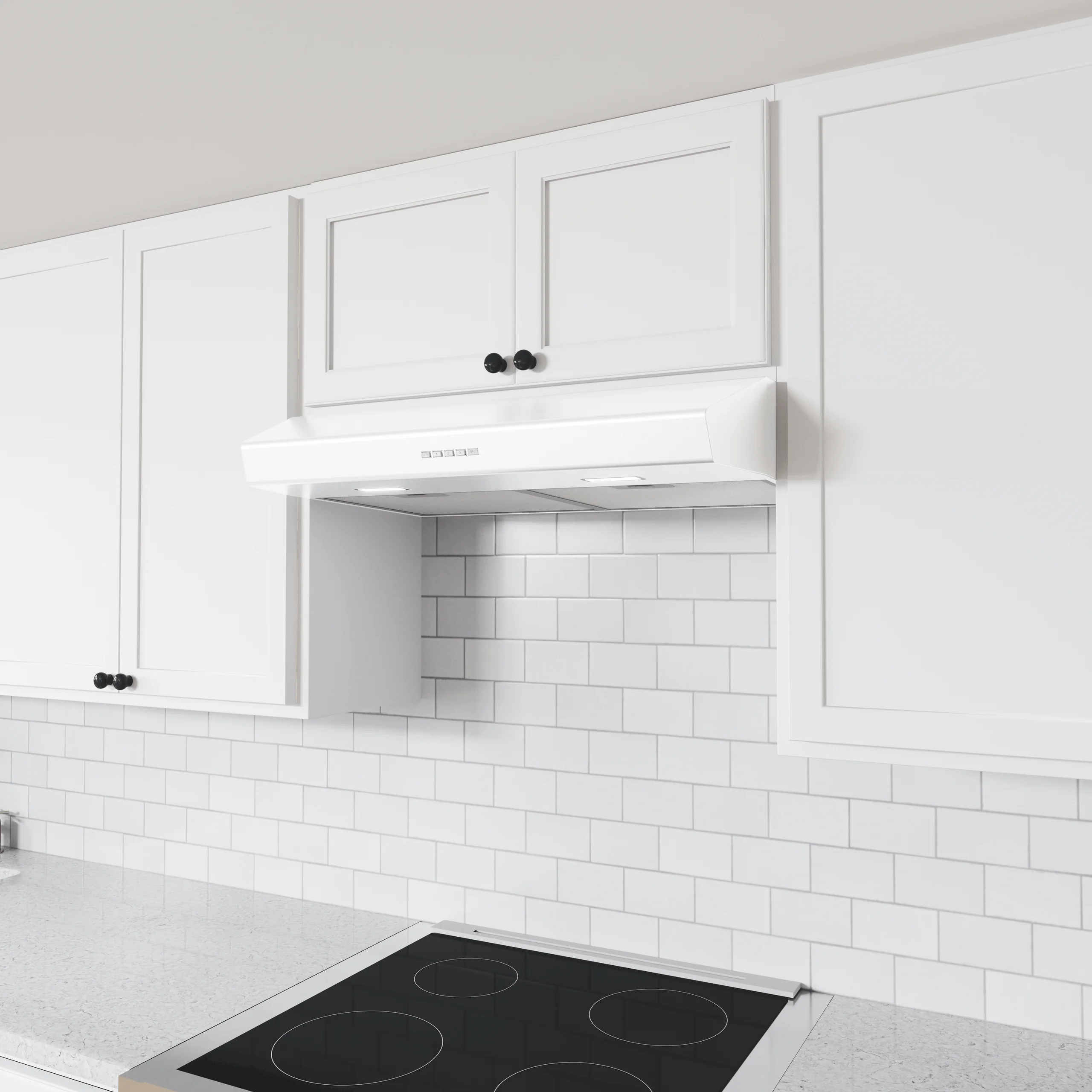 LumiLight LED Lighting, Electronic Touch Controls, Low-profile body, Extra-wide mesh filters, Vertical or horizontal ducting, Multiple color options, Optional Ductless Recirculating Kit