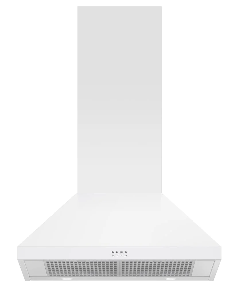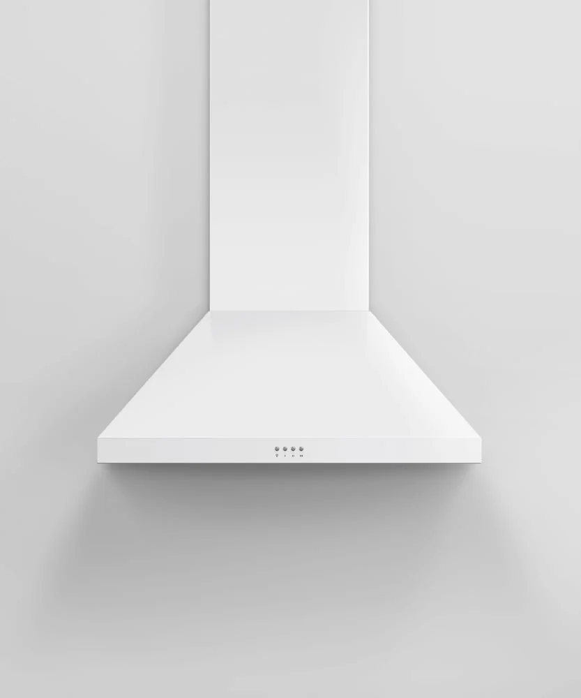 Pairing well with the white Classic Range, this wall chimney range hood extracts steam, grease and cooking odors effectively.
