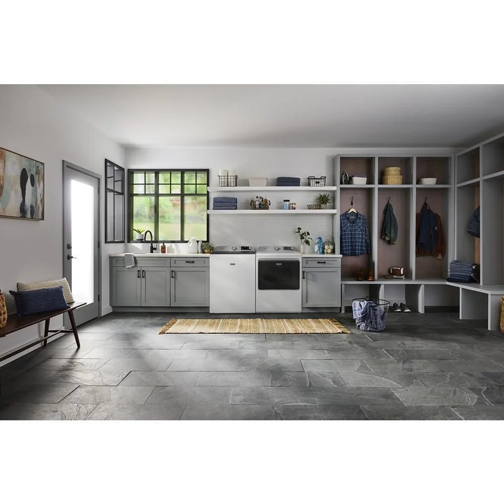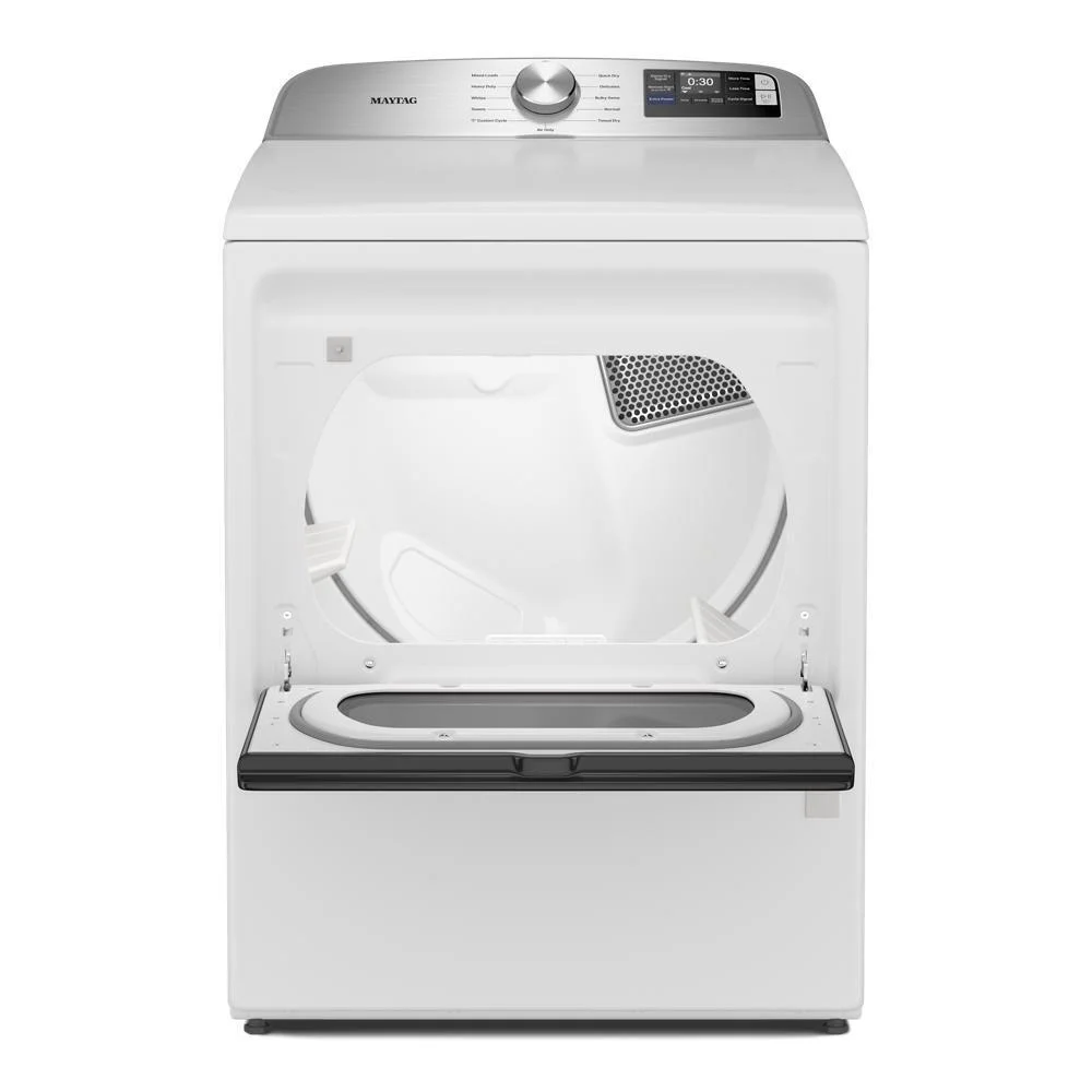 Extra Power boosts drying power to get thick fabrics drier the first time.* Advanced Moisture Sensing monitors inside moisture and air temperatures to help evenly dry loads. Dry a small load fast with the Quick Dry cycle, which pairs nicely with the Quick Wash cycle on select Maytag® washers to get clothes ready in no time. The Wrinkle Prevent option runs for up to 150 minutes after the cycle has ended to keep wrinkles from forming as the dryer continues to tumble. Smart features help you stay in control and efficiently manage laundry from anywhere.** Use the Maytag™ app to remotely start or stop your appliance and get end of cycle notifications so no load is left behind. Plus, troubleshoot select issues to avoid unnecessary service calls. *Results may vary based on load size and type. **WiFi & App Required. Features subject to change. Details & privacy info at maytag.com/connect. Appliance must be set to remote enable.