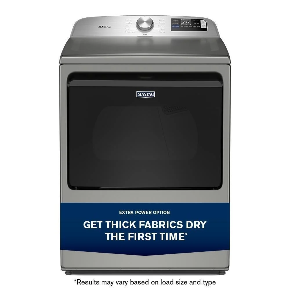 Extra Power boosts drying power to get thick fabrics drier the first time.* Advanced Moisture Sensing monitors inside moisture and air temperatures to help evenly dry loads. Dry a small load fast with the Quick Dry cycle, which pairs nicely with the Quick Wash cycle on select Maytag® washers to get clothes ready in no time. The Wrinkle Prevent option runs for up to 150 minutes after the cycle has ended to keep wrinkles from forming as the dryer continues to tumble. Smart features help you stay in control and efficiently manage laundry from anywhere.** Use the Maytag™ app to remotely start or stop your appliance and get end of cycle notifications so no load is left behind. Plus, troubleshoot select issues to avoid unnecessary service calls. *Results may vary based on load size and type. **WiFi & App Required. Features subject to change. Details & privacy info at maytag.com/connect. Appliance must be set to remote enable.
