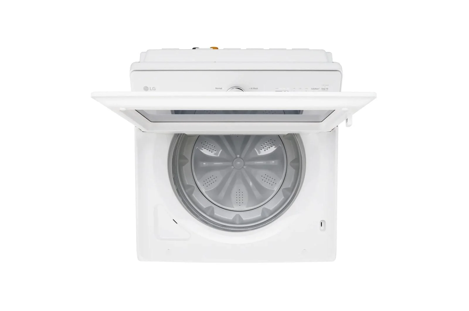 Enjoy a 2-year limited warranty on select appliances purchased through December 31, 2025 via the ThinQ® app. Terms apply., 5.0 cu.ft. Mega Capacity lets you fit more in every load, EasyUnload™ design offers a more comfortable, ergonomic reach without sacrificing capacity, Built-in intelligence takes out the guesswork-AI technology selects optimal wash settings, Top load washer, completely reimagined- Electronic Controls with LED Display & SlamProof™ Glass Lid, Get the ThinQ® app to access smart functions, ThinQ Care™ alerts and download new ThinQ UP™ features, TurboWash® Technology -powerful yet gentle clean