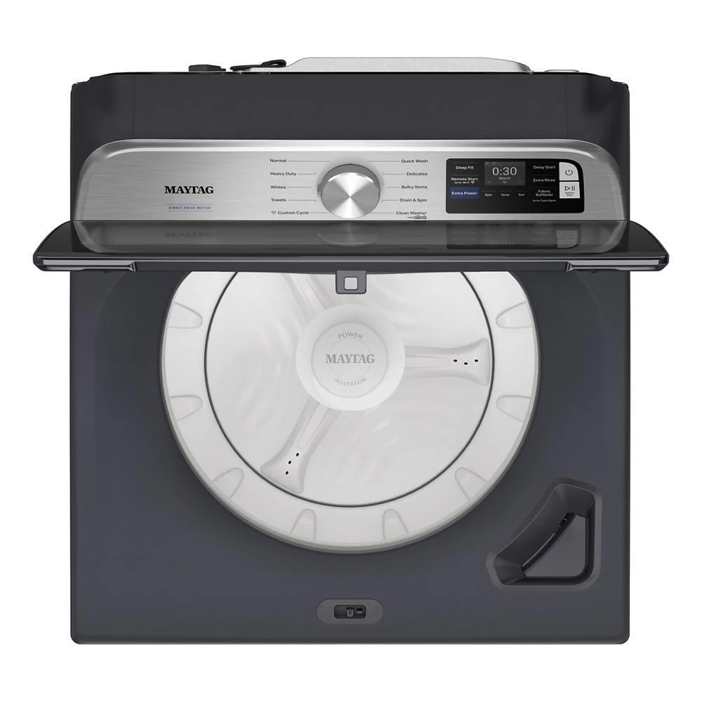 With every laundry cycle, Maytag brand delivers powerful cleaning with the Power™ agitator to break apart stains on your dirty clothes. Use Extra Power for boosted stain fighting on any wash cycle, while the Deep Fill option delivers more water when you want it with your choice of deeper water levels.* Plus, smart features help you stay in control and efficiently manage laundry from anywhere.** Use the Maytag™ app to remotely start or stop your appliance and get end of cycle notifications. *Bulky Items cycle only available with deepest water level. **WiFi & App Required. Features subject to change. Details & privacy info at maytag.com/connect. Appliance must be set to remote enable.