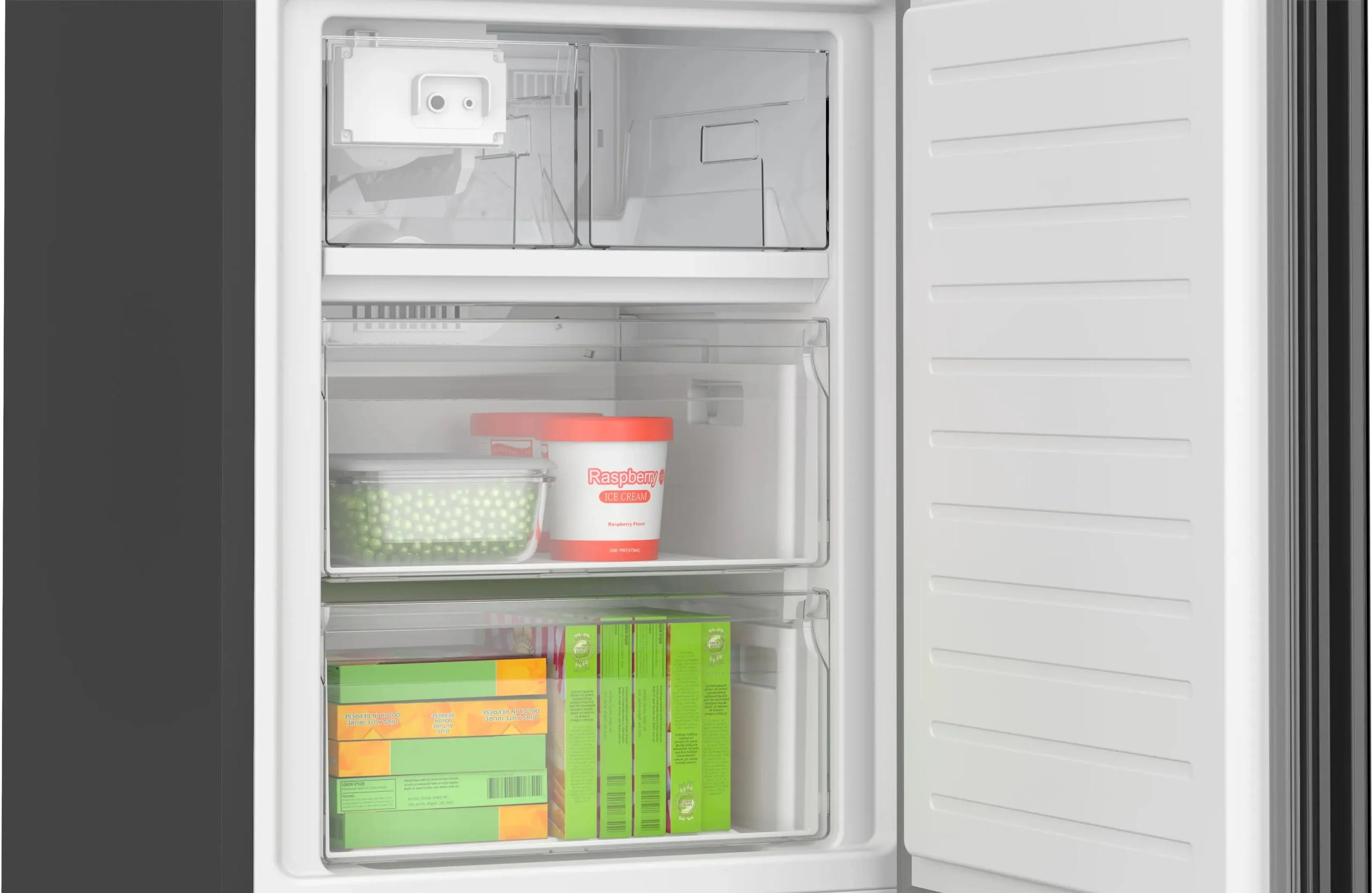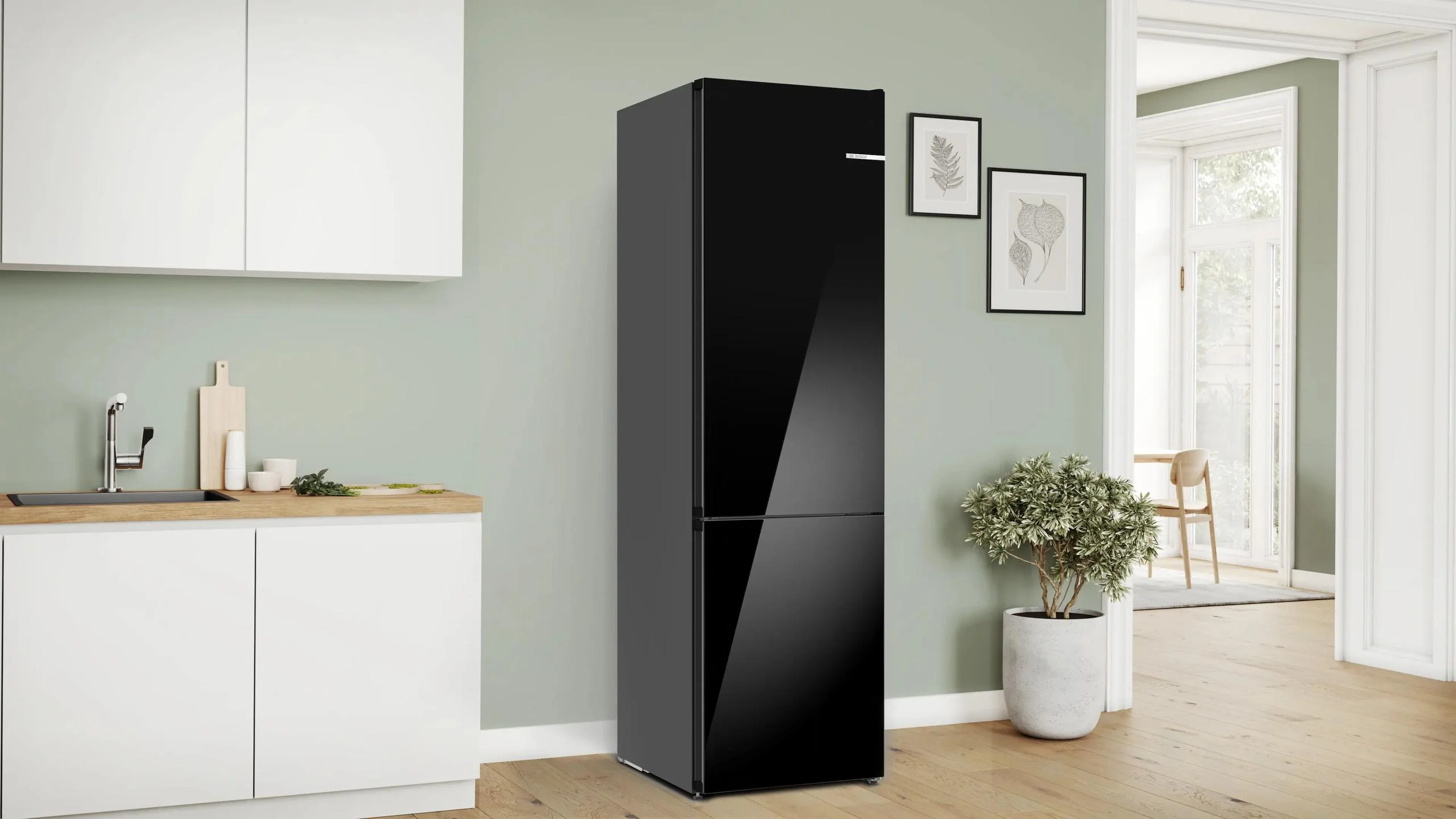 The Refrigerators 800 Series, Free-Standing Fridge-Freezer With Freezer At Bottom, Glass Door, 24'', Black, Total No Frost, made by Bosch,