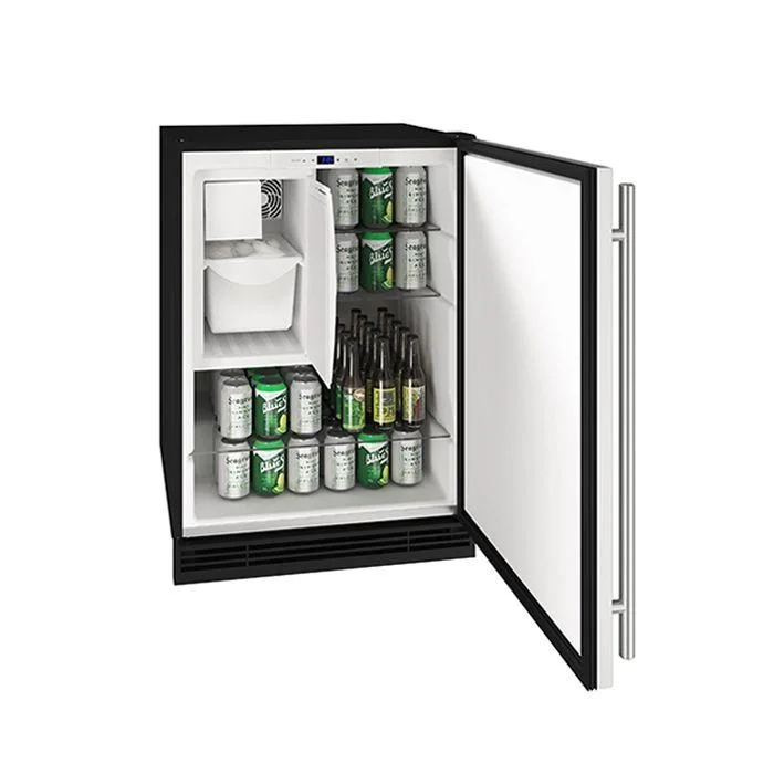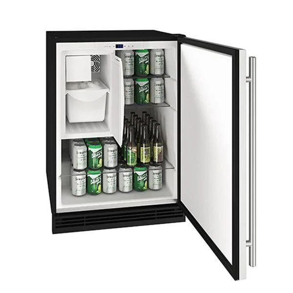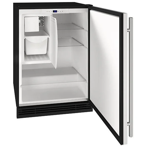 Store fresh produce, deli foods, pantry items, beverages, and have fresh ice in our 24" 1 Class Refrigerator/Ice Maker. This combo model is available with stainless steel, black, white, or integrated door finishes that accept a custom door panel to match your surrounding cabinetry. Designed to preserve your favorite ingredients, snacks, and beverages, U-Line's 1 Class installs beautifully into cabinetry, or in freestanding applications.