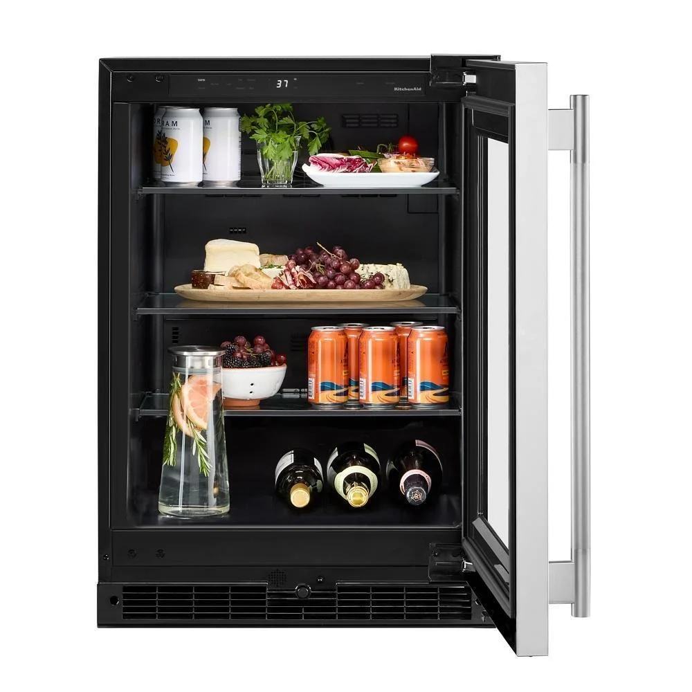 The Refrigerators 24" Undercounter Refrigerator With Glass Door, made by KitchenAid, is brought to you by Sherman's. Sherman's is a local furniture store, serving the Peoria, Normal, and Peru, IL area. Product availability may vary. Contact us for the most current availability on this product.