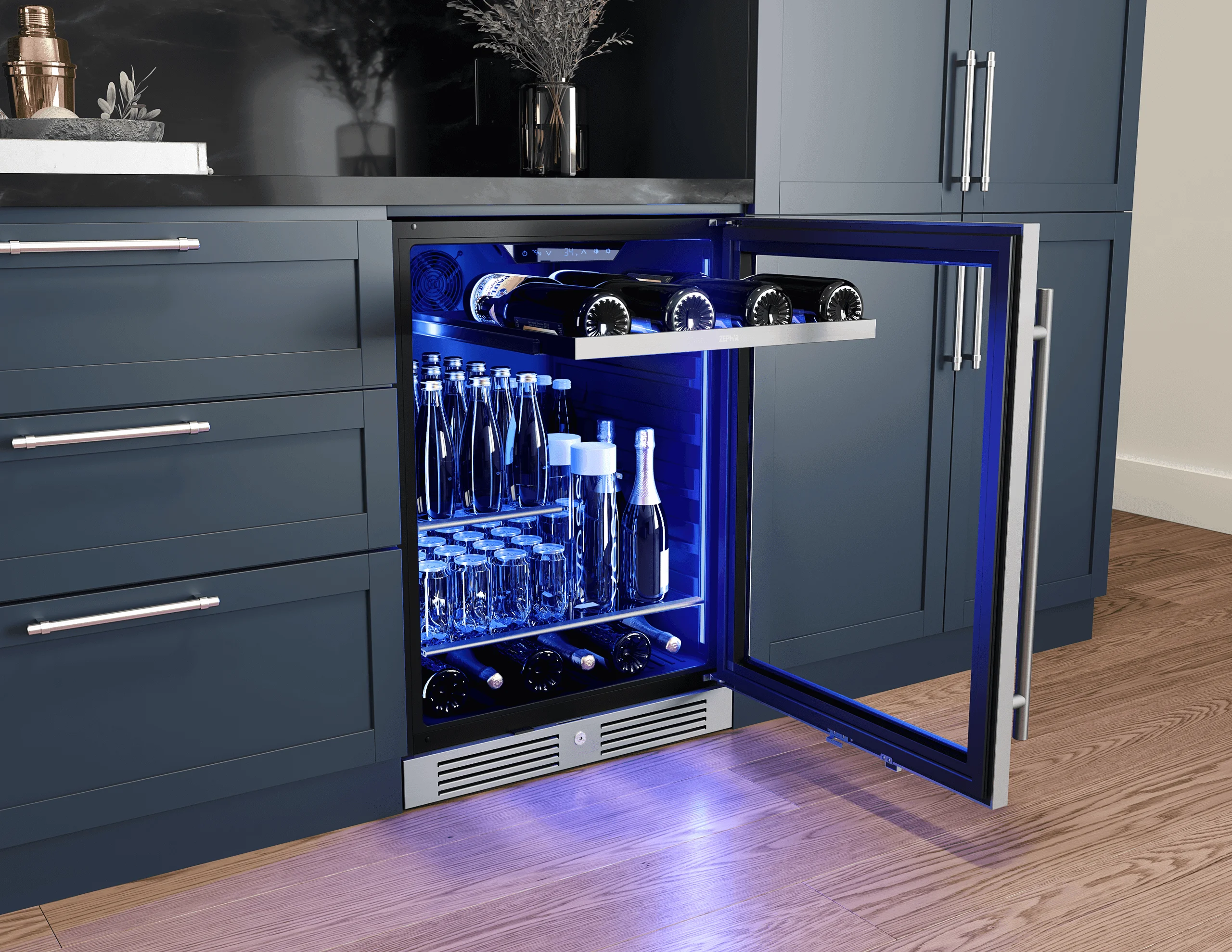 PreciseTemp™, Active Cooling Technology, Vibration Dampening System, Dual-Pane, Low-e Argon-Filled Glass Door, 3 Color LED Lighting, Full-Extension Black Wood Rack