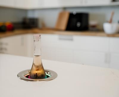 - Installs into a 6-1/8" diameter opening in countertops from 3/16" to 3" thick
