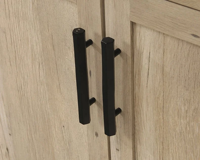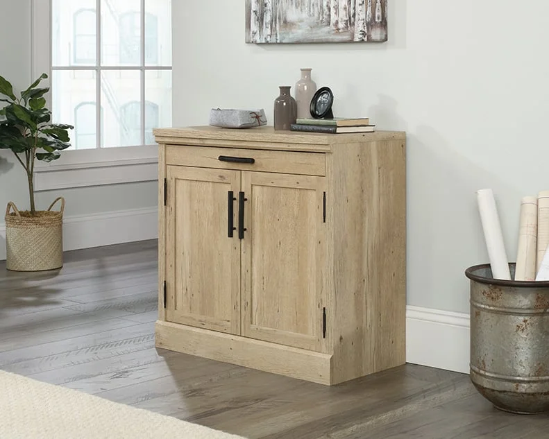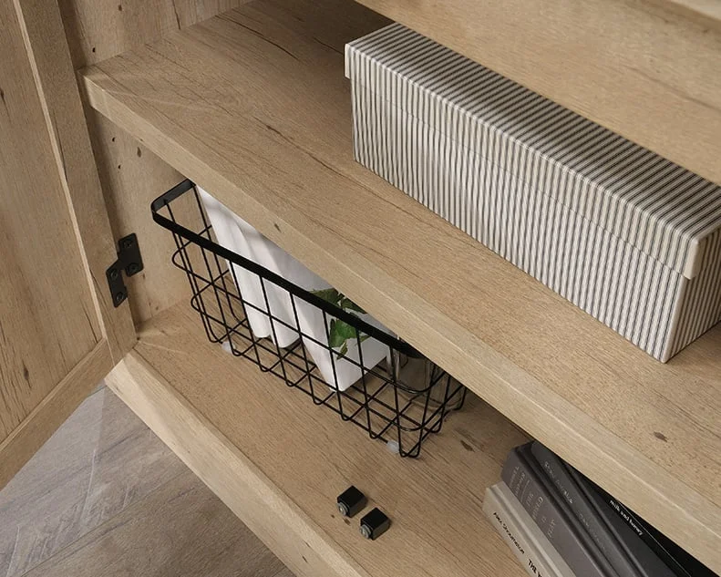 The Aspen Post Modern Farmhouse Library Cabinet with Adjustable Shelf, made by Sauder,