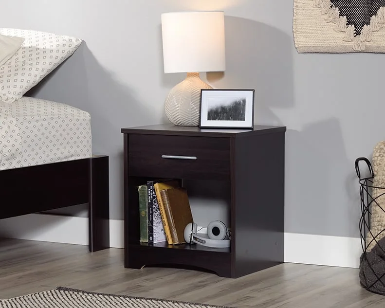The Beginnings Transitional 1-Drawer Nightstand with Lower Storage Shelf, made by Sauder,