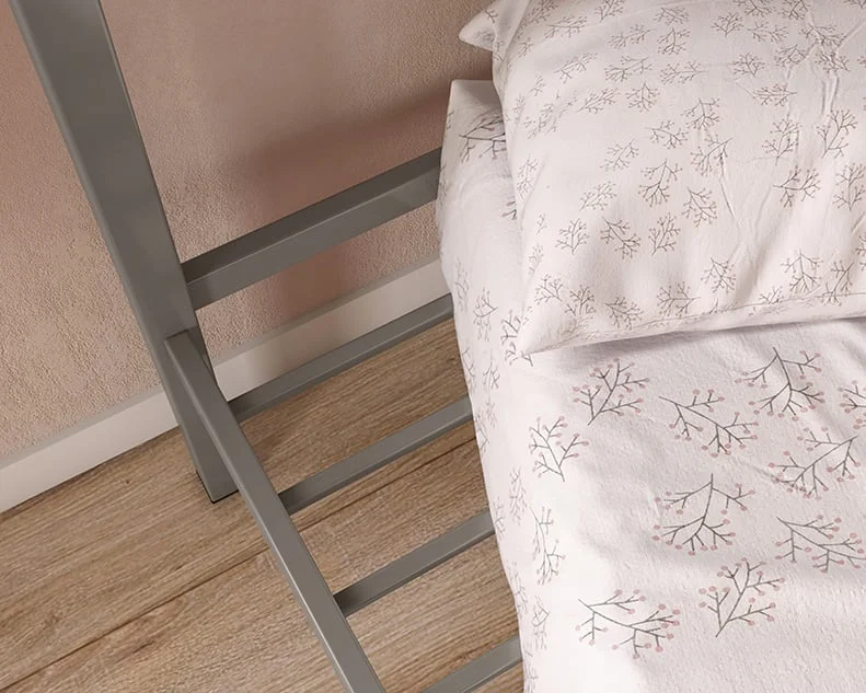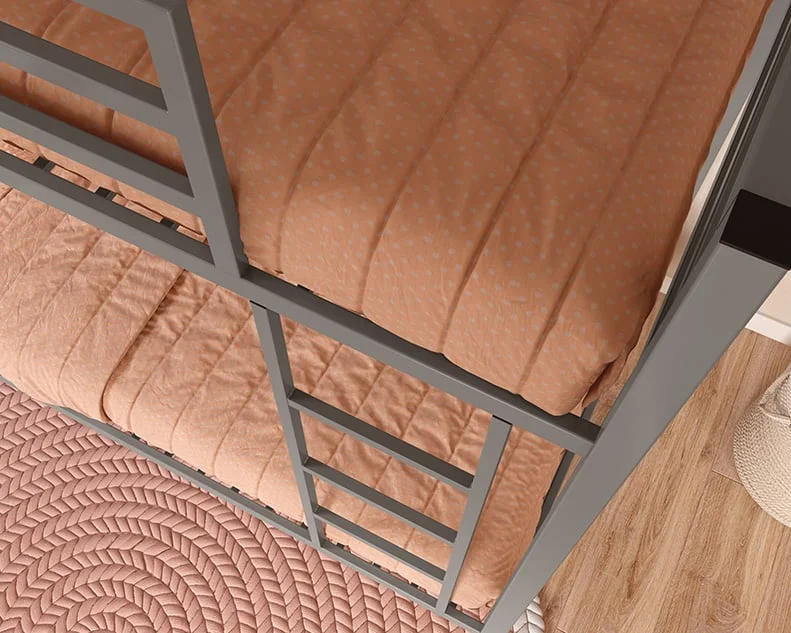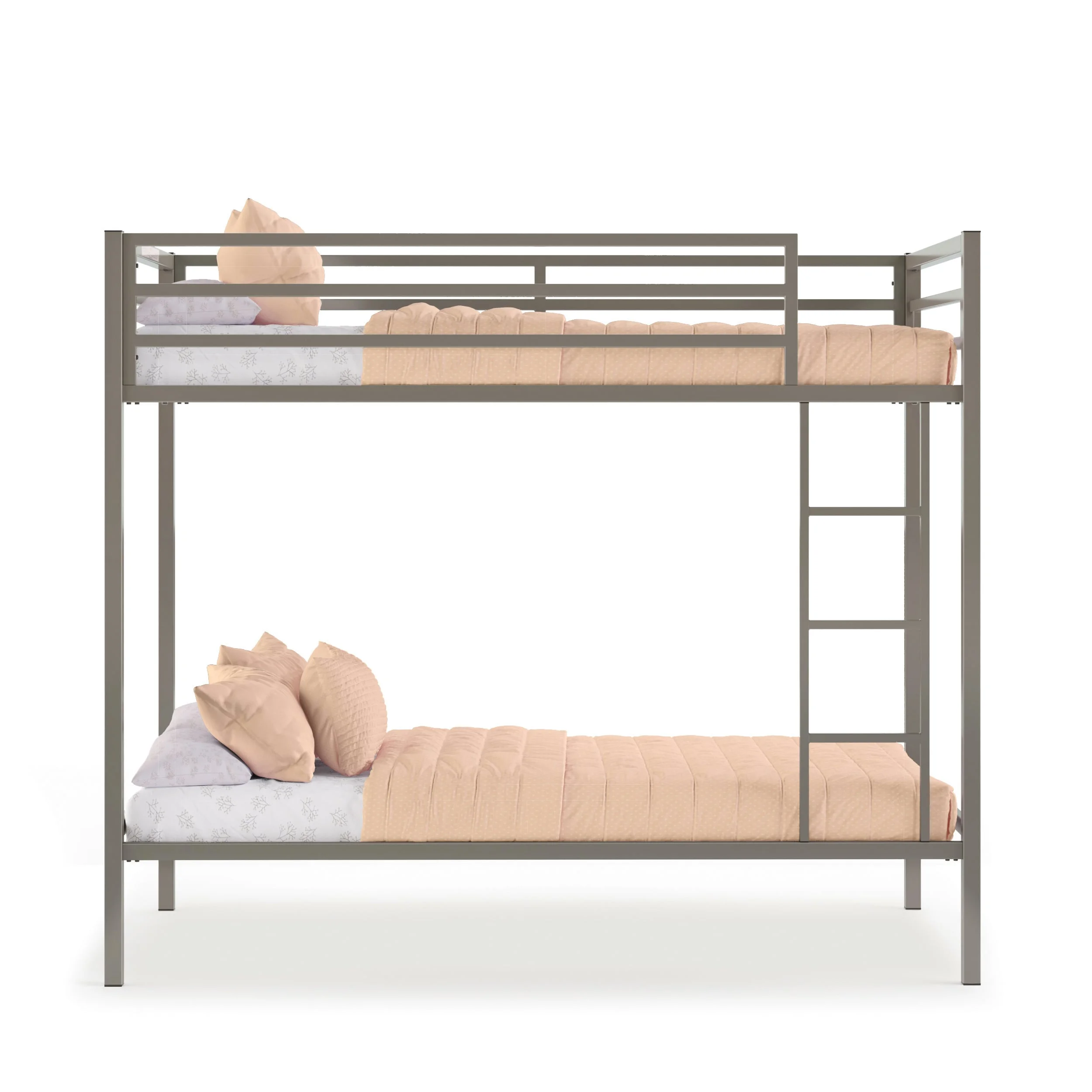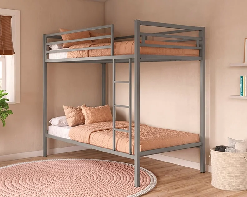 Sturdy, powder coated metal construction for durability. Guard rails on top bunk and fixed ladder. 22 metal tube slats provide superior support for solo foam mattresses (check your mattress specifications for warranty compliance). Use only mattress which is 74"-75" long and 37. 5"-38. 5" wide on both upper and lower bunks . Maximum mattress height on top bunk is 9". Top bunk bed weight limit: 200 lbs. Bottom bunk bed weight limit: 225 lbs. Safety tested for ages 3 and up. Gray.