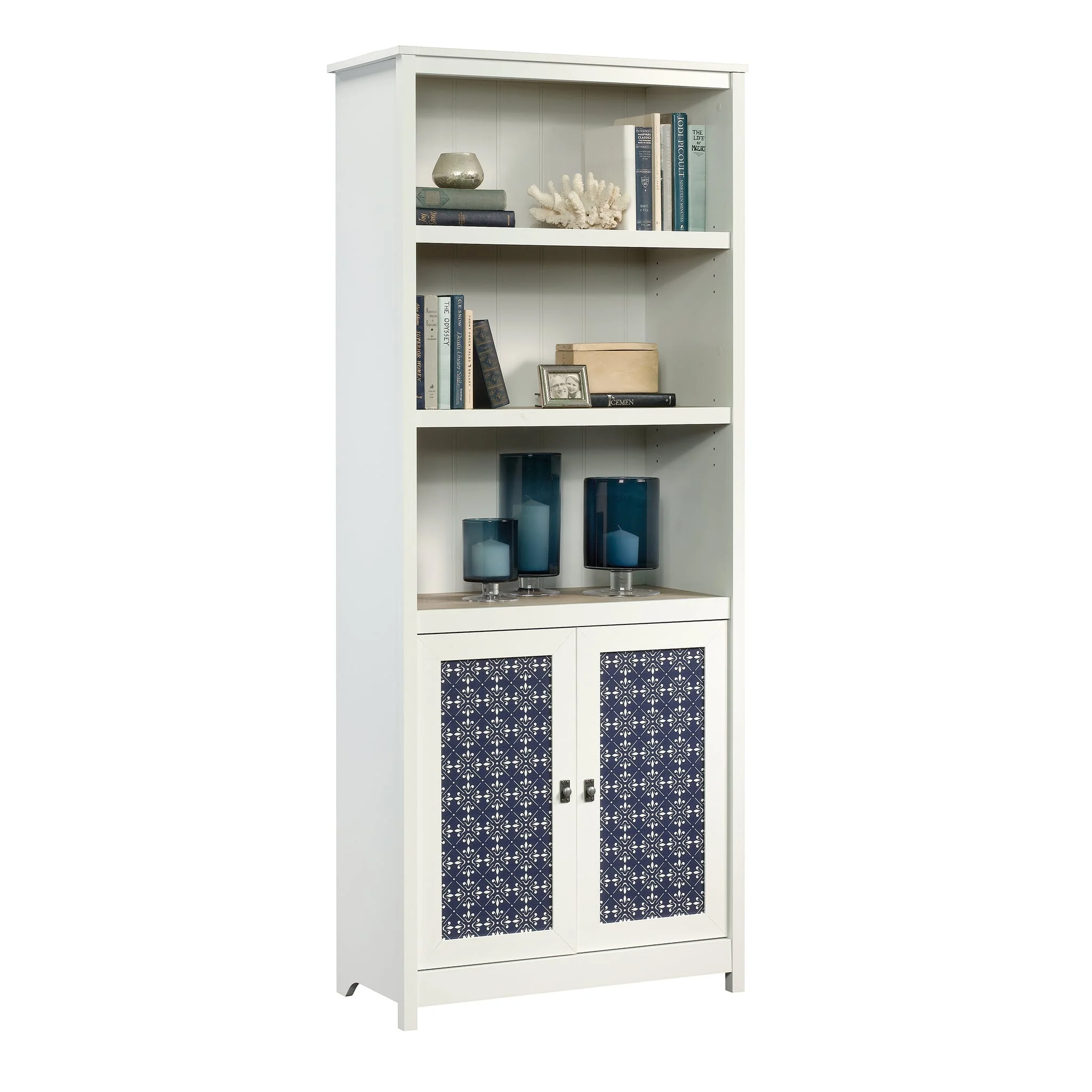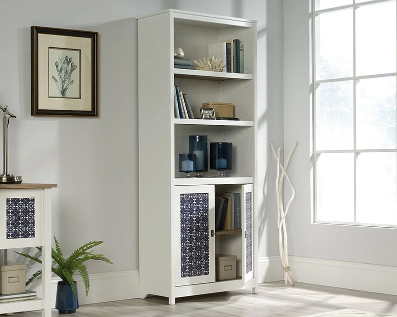 The Cottage Road Farmhouse Library Bookcase with Adjustable Shelves, made by Sauder,