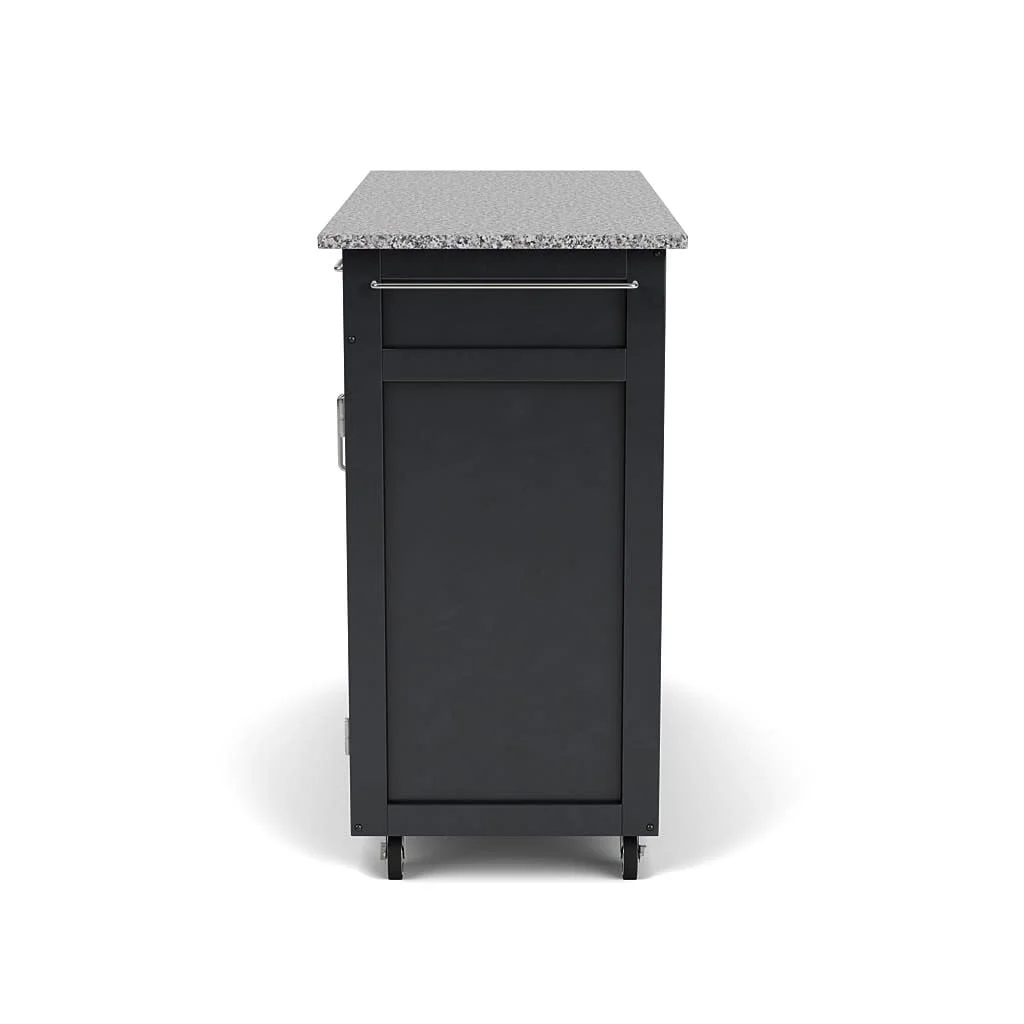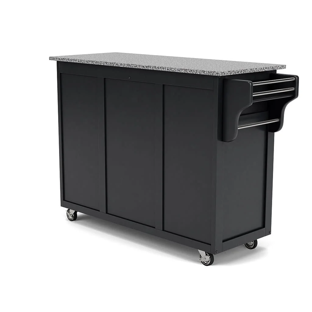 Sustainable hardwood harvested using earth-friendly measures., Ageless salt and pepper granite top is both beautiful and durable, providing resistance to heat, scratches and stains., Black finish for a chic look that never goes out of style., Industrial-strength casters to make it easier to move heavy loads while protecting your floor surface.