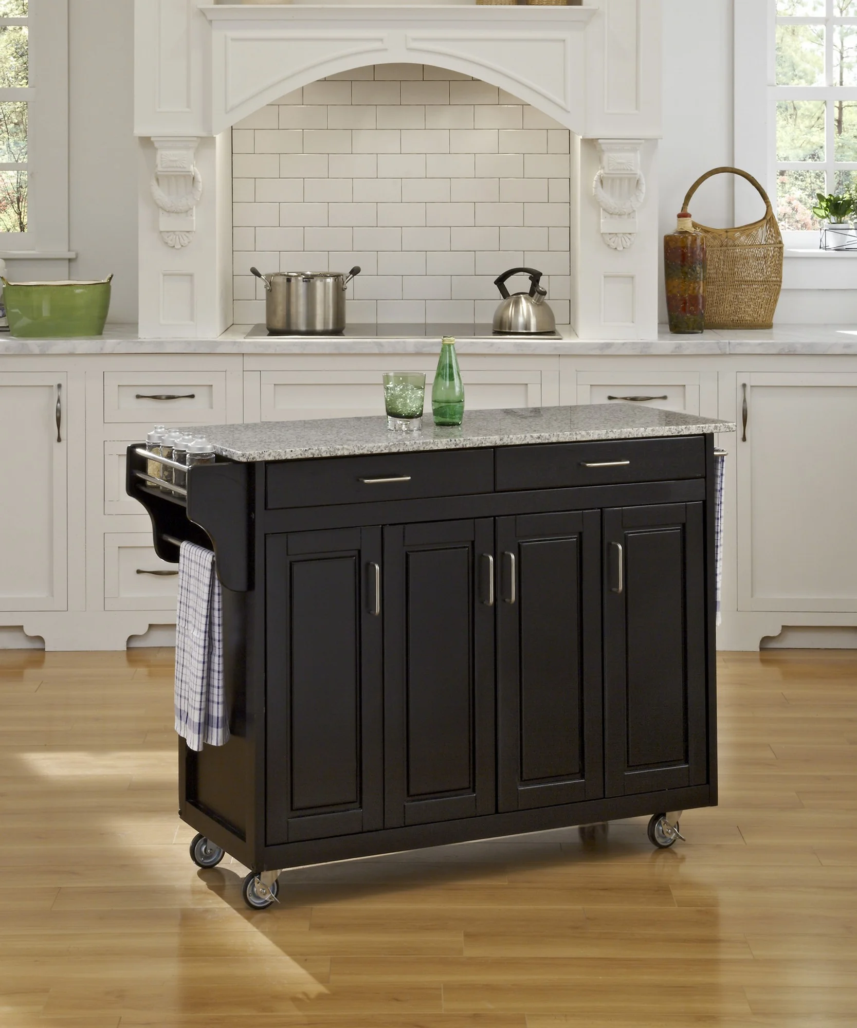 The Create-A-Cart Traditional Kitchen Cart with Black Finish and Granite Top, made by homestyles,