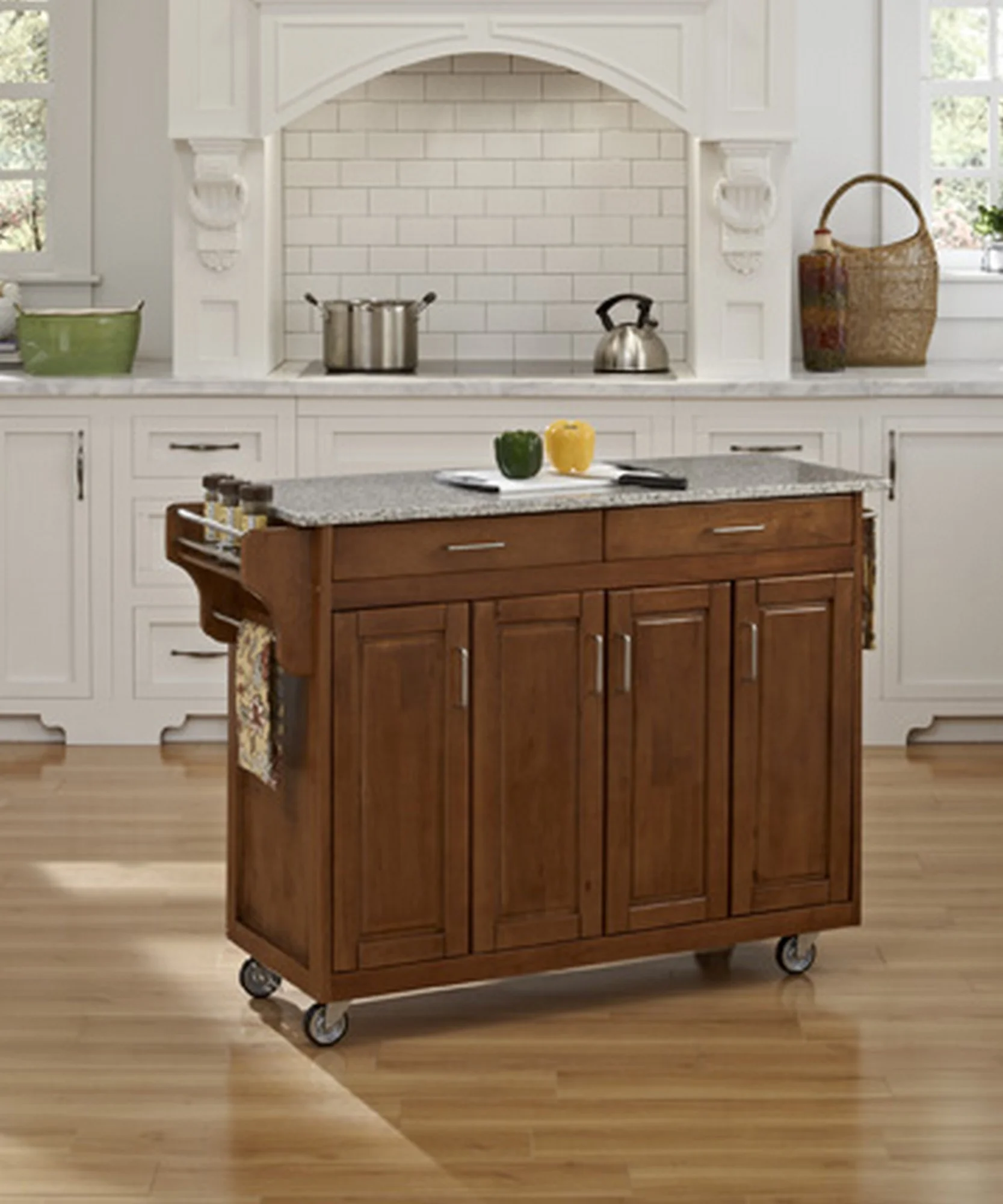 The Create-A-Cart Traditional Kitchen Cart with Cottage Oak Finish and Granite Top, made by homestyles,
