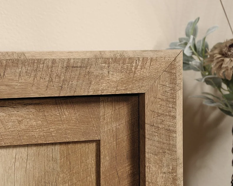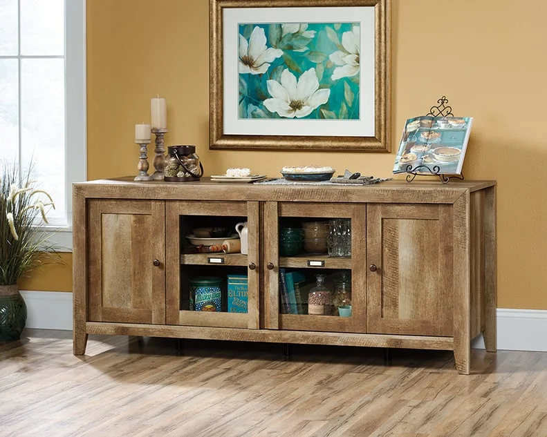 The Dakota Pass Farmhouse Storage credenza with Glass Doors, made by Sauder,