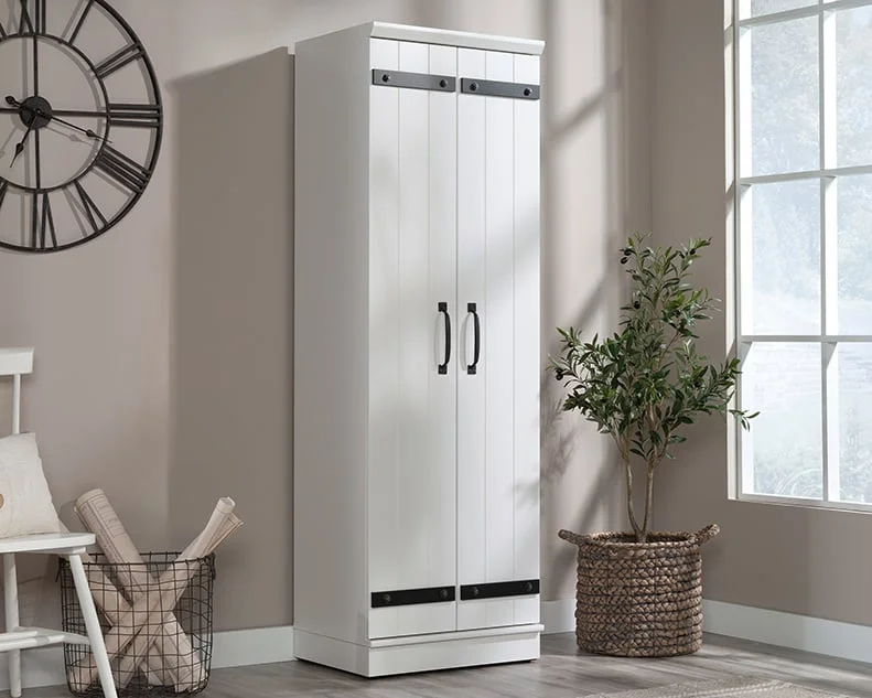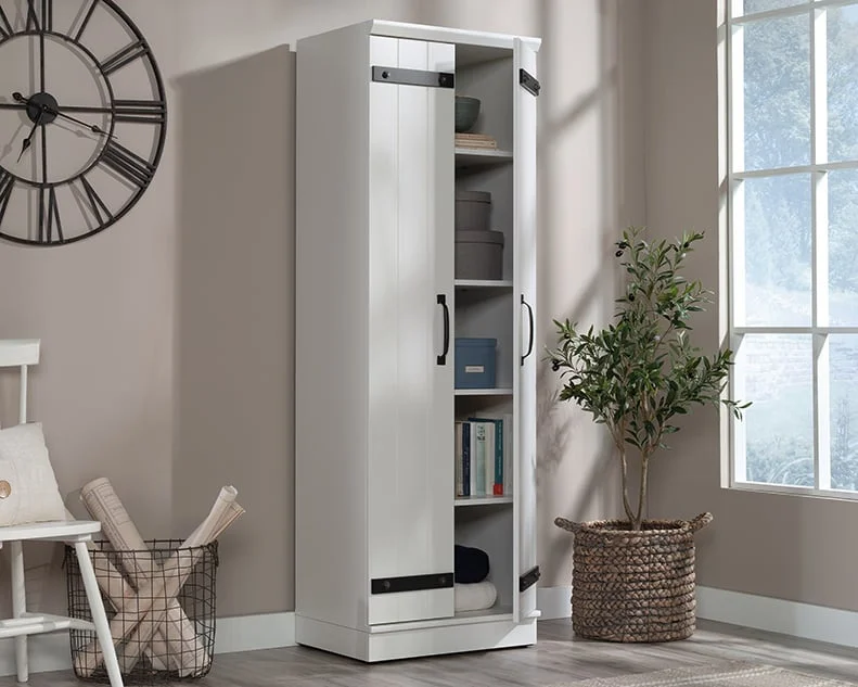 The HomePlus Farmhouse Two-Door Storage Cabinet with Adjustable Shelving, made by Sauder,