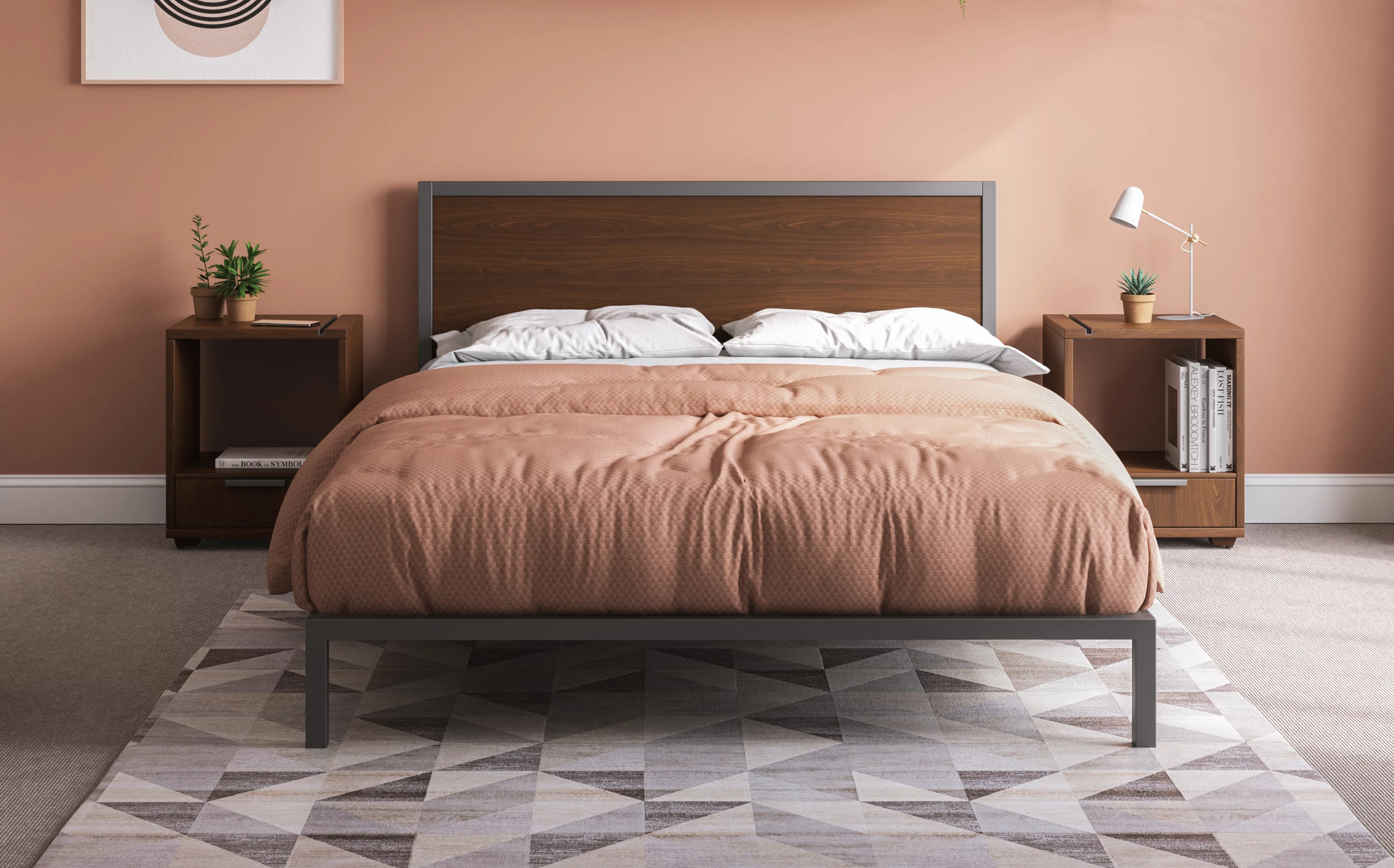 Queen Platform Bed with Two Nightstands