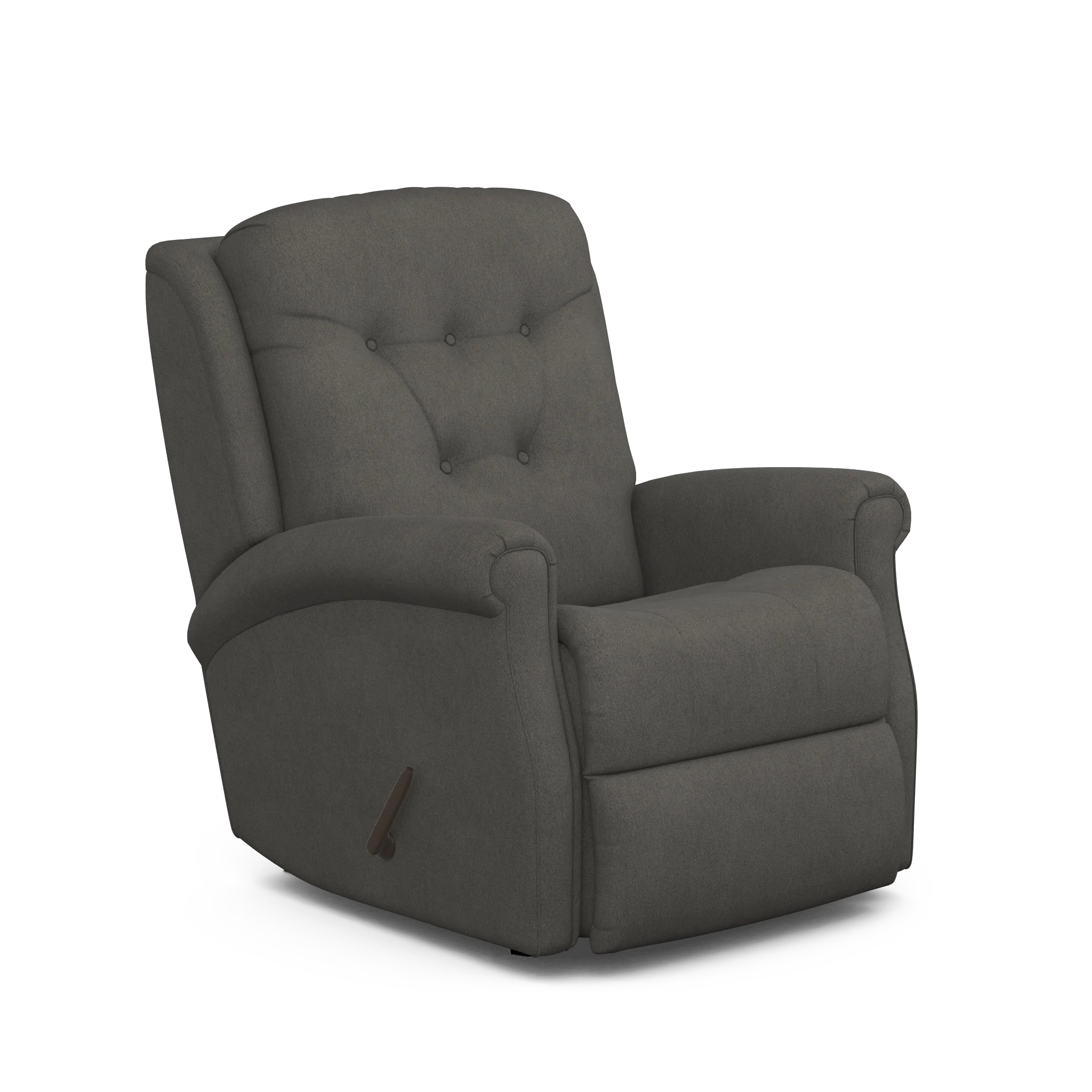 moreGift yourself the best place to sit back and relax with this recliner. With its button tufted back, sleek back lines, and sloping rolled arms, this chair has design details that refine the basic, casual look most recliners have. Its lifetime-guaranteed steel and laminated hardwood frame along with its high resiliency, high density foam cushions provide unmatched durability and comfort too. Thanks to its rocker base you can also engage in a relaxing, rocking motion when you're in the mood for a little soothing movement.