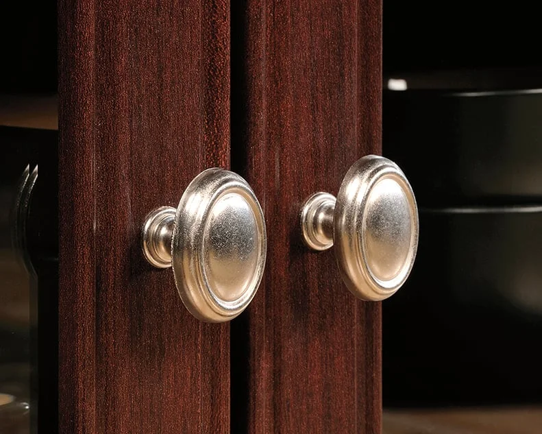 The Palladia Traditional Storage Credenza with Safety-Tempered Glass, made by Sauder,